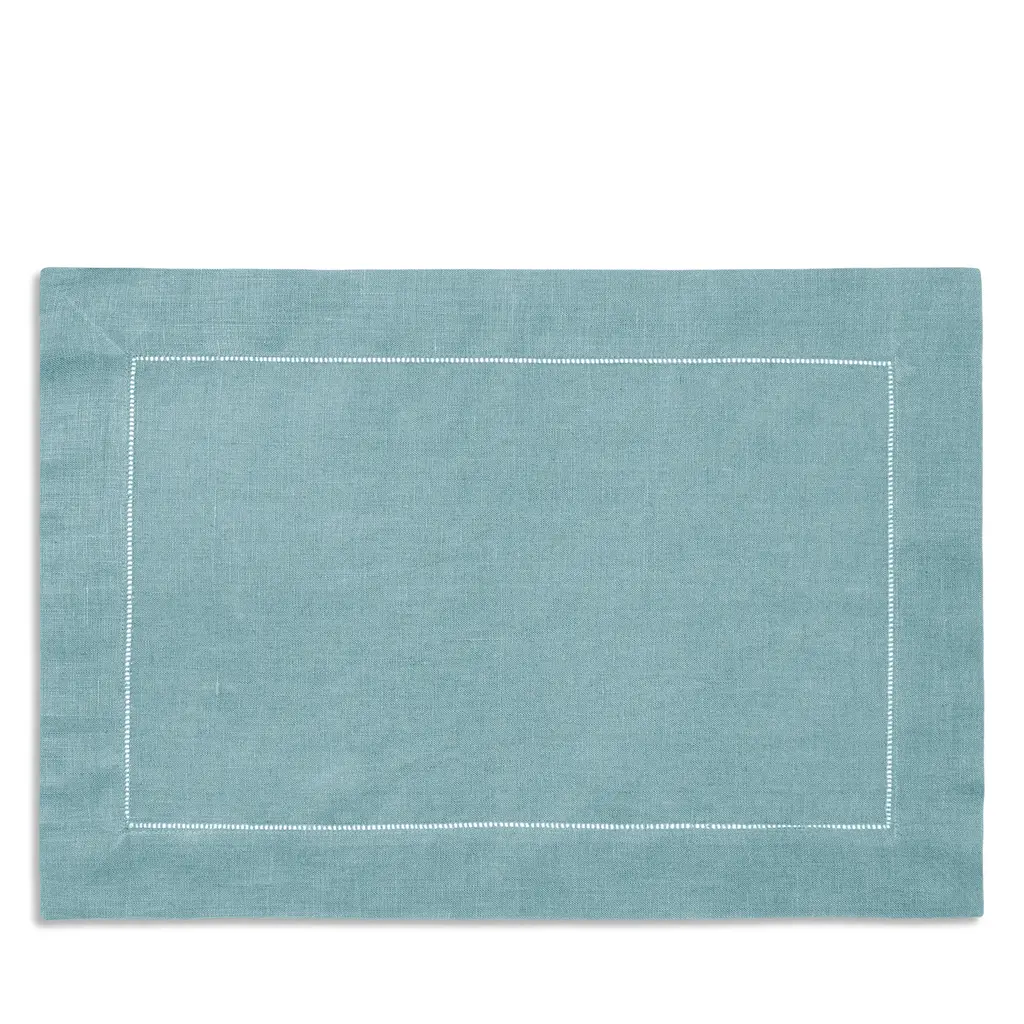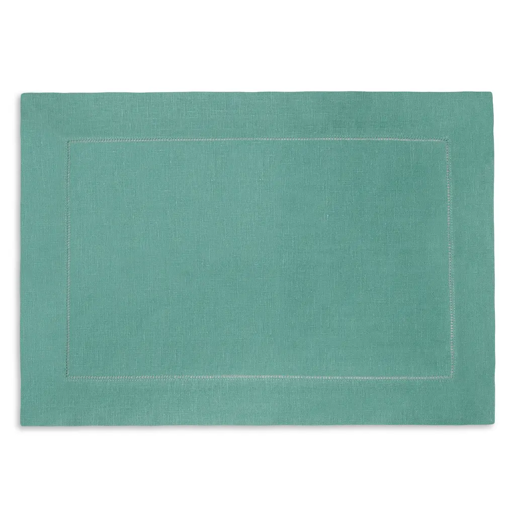 Beautiful placemats in bold solid colors, with a row of hemstitching detail for an elegant dining table.