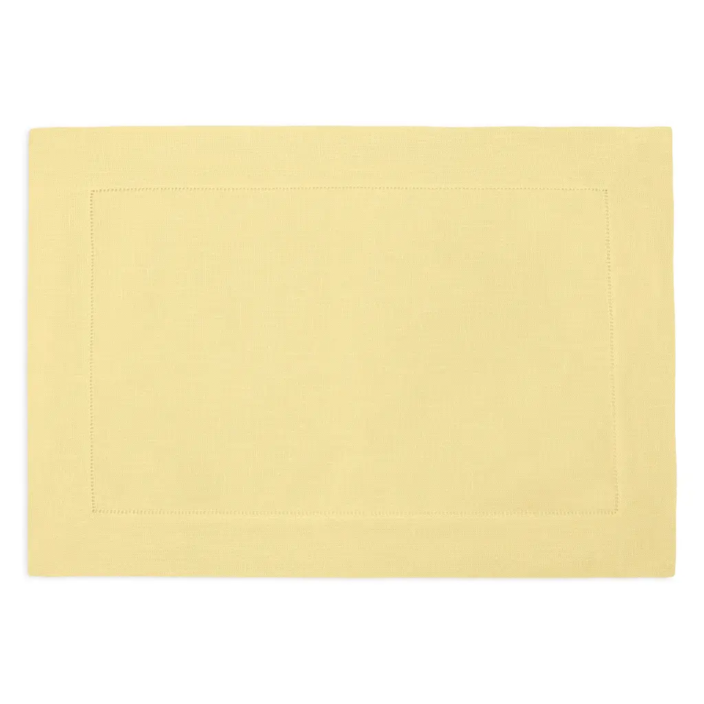 Beautiful placemats in bold solid colors, with a row of hemstitching detail for an elegant dining table.