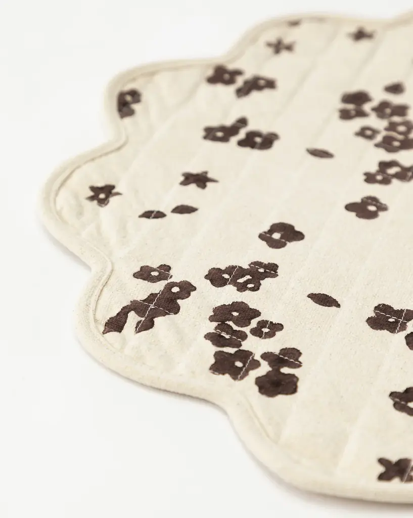 Made from cotton, the Floral Quilted Placemat is a classic yet refreshing way to be greeted at the table. Its floral details and quilted feel complement its round and scalloped design.