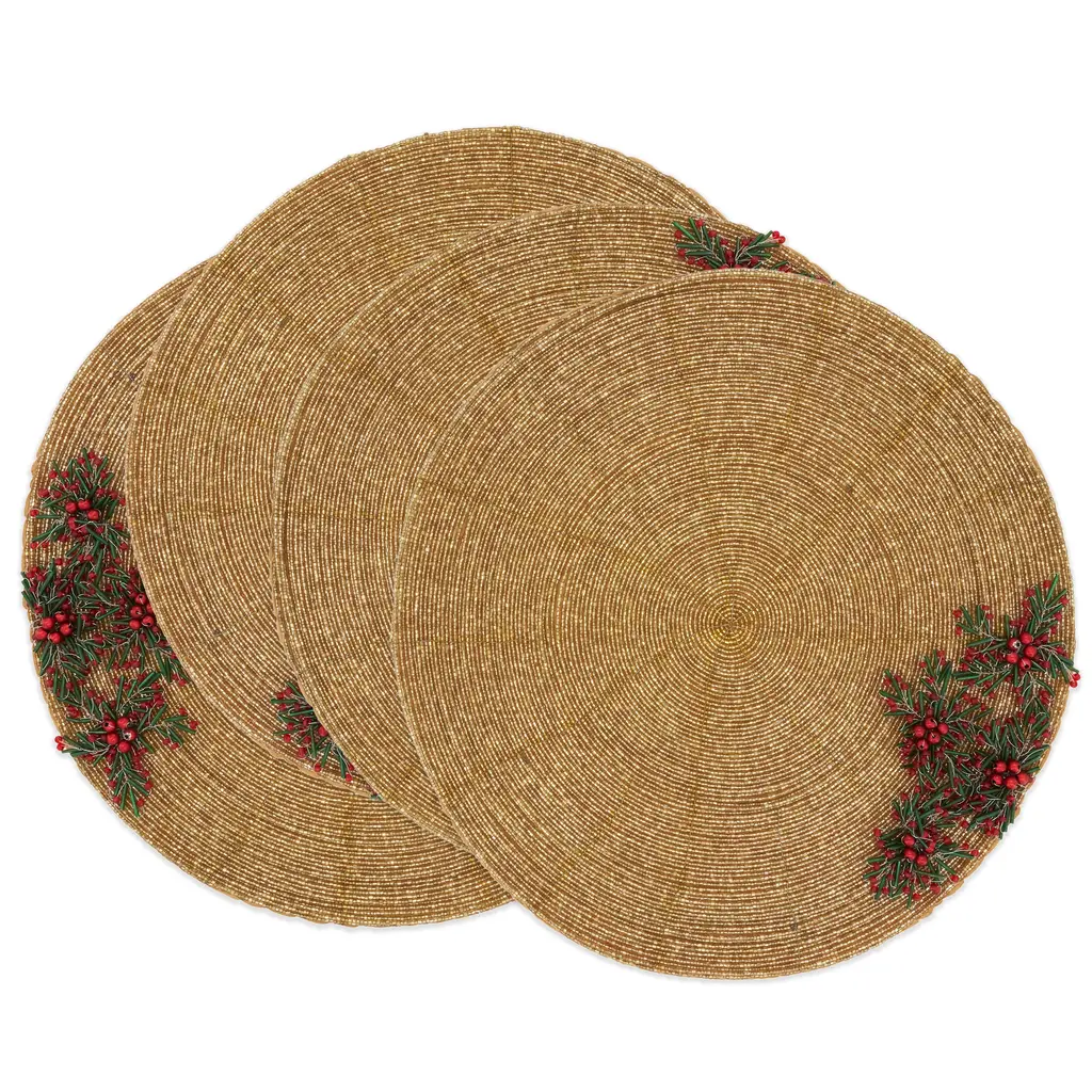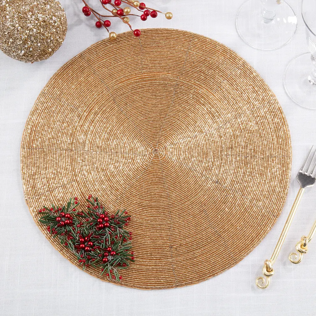 Flower Power Beaded Placemat, Set Of 4 - Gold