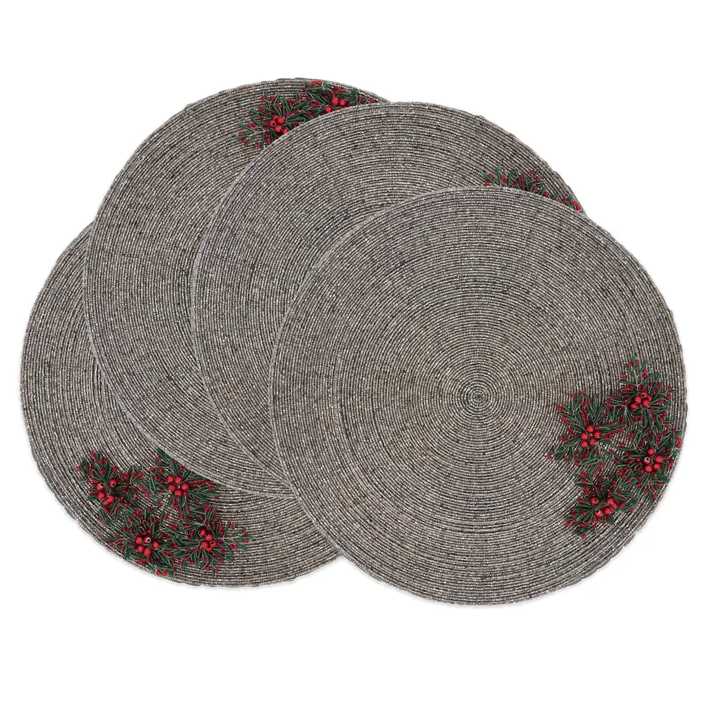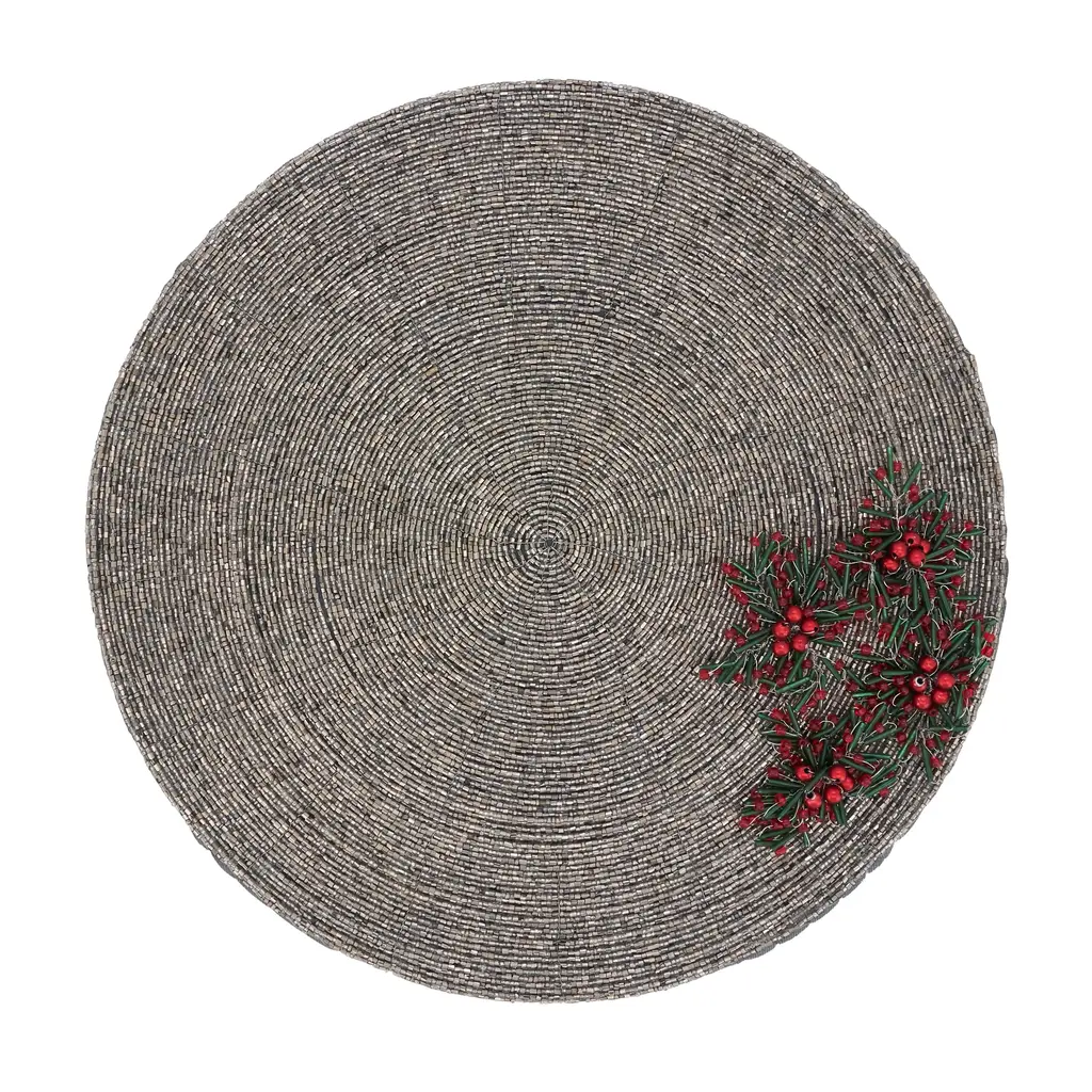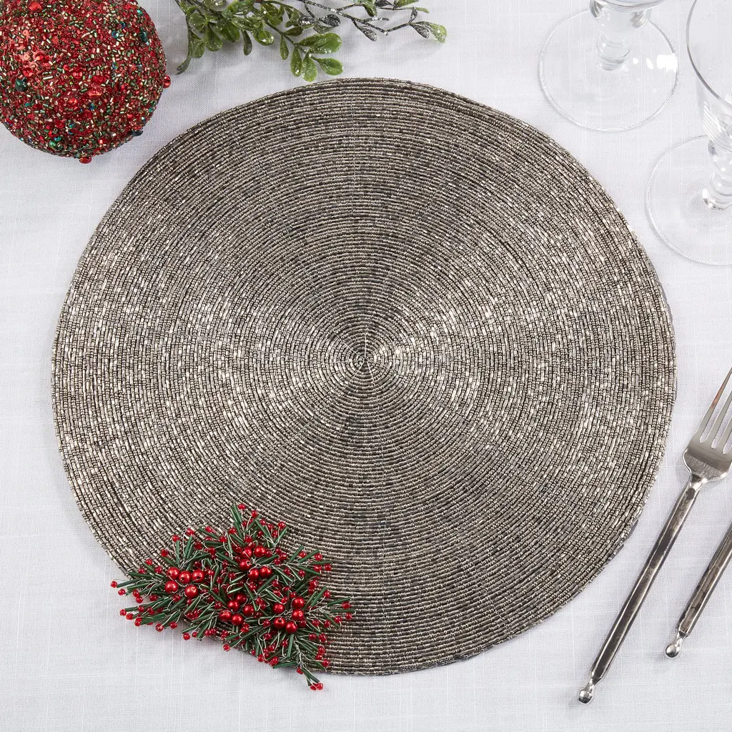 Elevate your table setting with this set of Beaded Flower Placemats. Intricately adorned with beaded floral motifs, they bring a touch of elegance and whimsy to any occasion. Crafted with meticulous attention to detail, these placemats add a captivating and stylish flair, perfect for adding a pop of beauty to your dining experience.