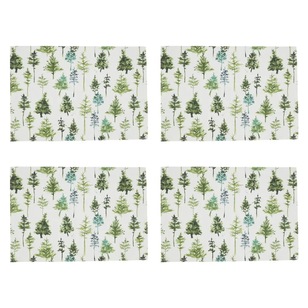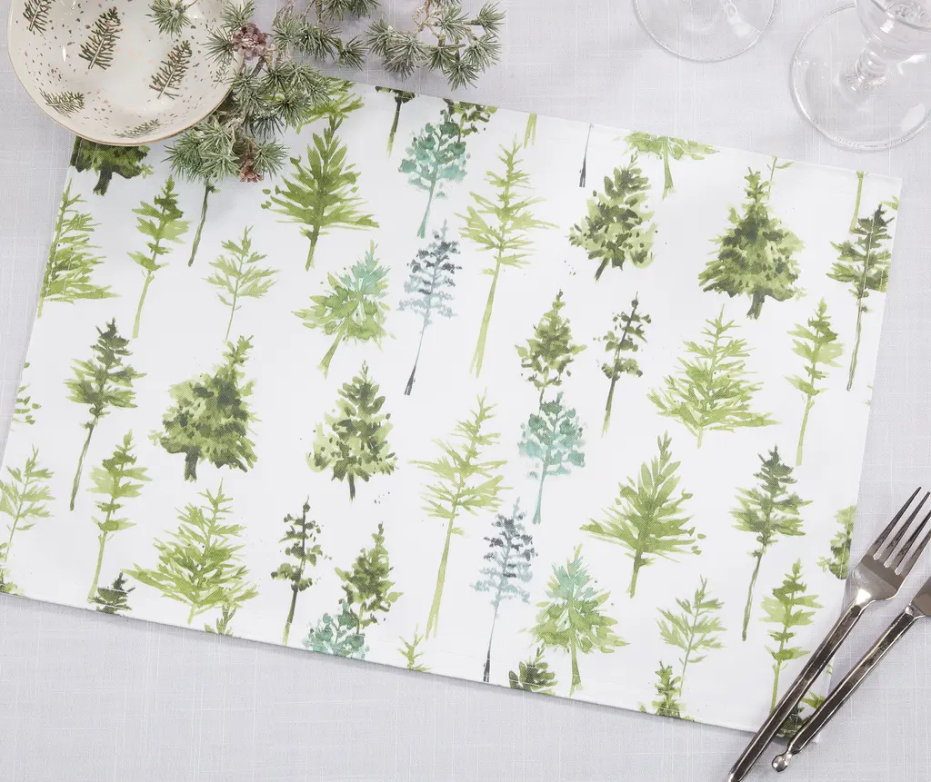 Casual, yet very stylish, this set of Forest Trees Design Placemats is a chic addition to your tabletop. Featuring different shades of green on a crisp white background, the table mats are inspired by the winter season and easy to pair. The set works great for many occasions, from everyday meals to casual entertaining.