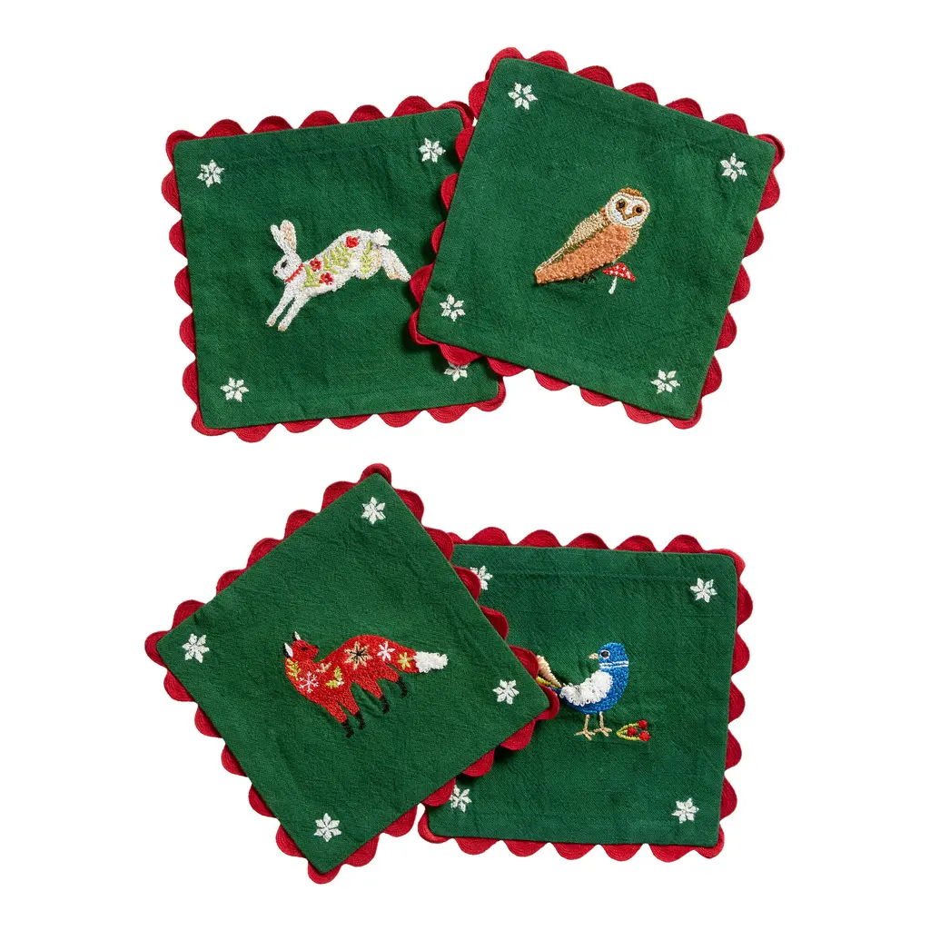 Add a playful, whimsical touch to your holiday table with these unique placemats that bring festive cheer to the season. Crafted by hand in India, each piece is a work of art, with glass beads meticulously sewn onto a hand-drawn design.