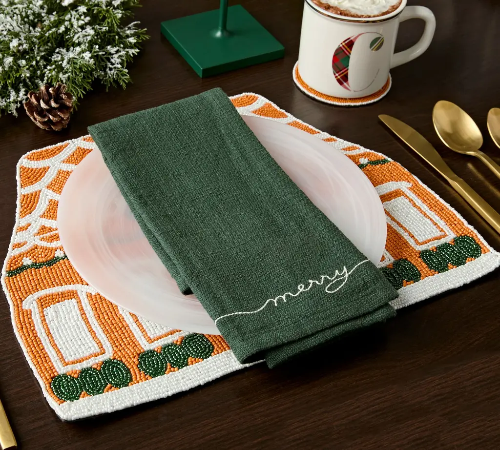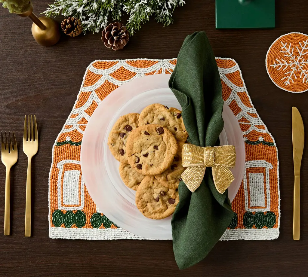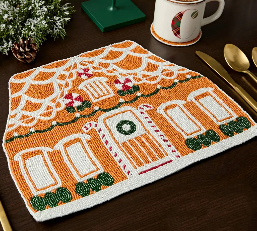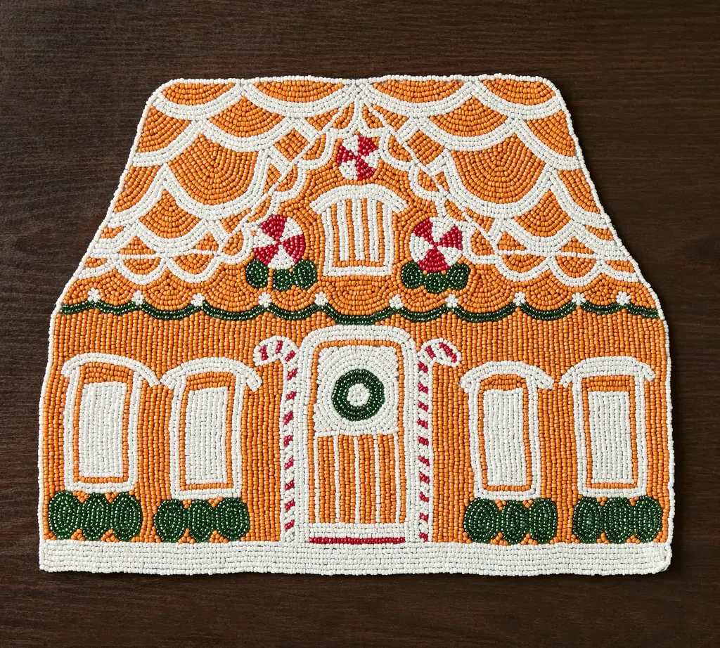Gingerbread House Handcrafted Beaded Placemats, Set Of 4