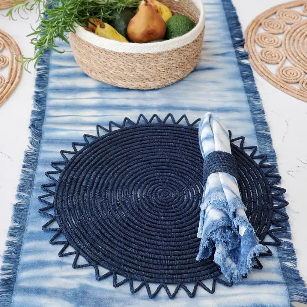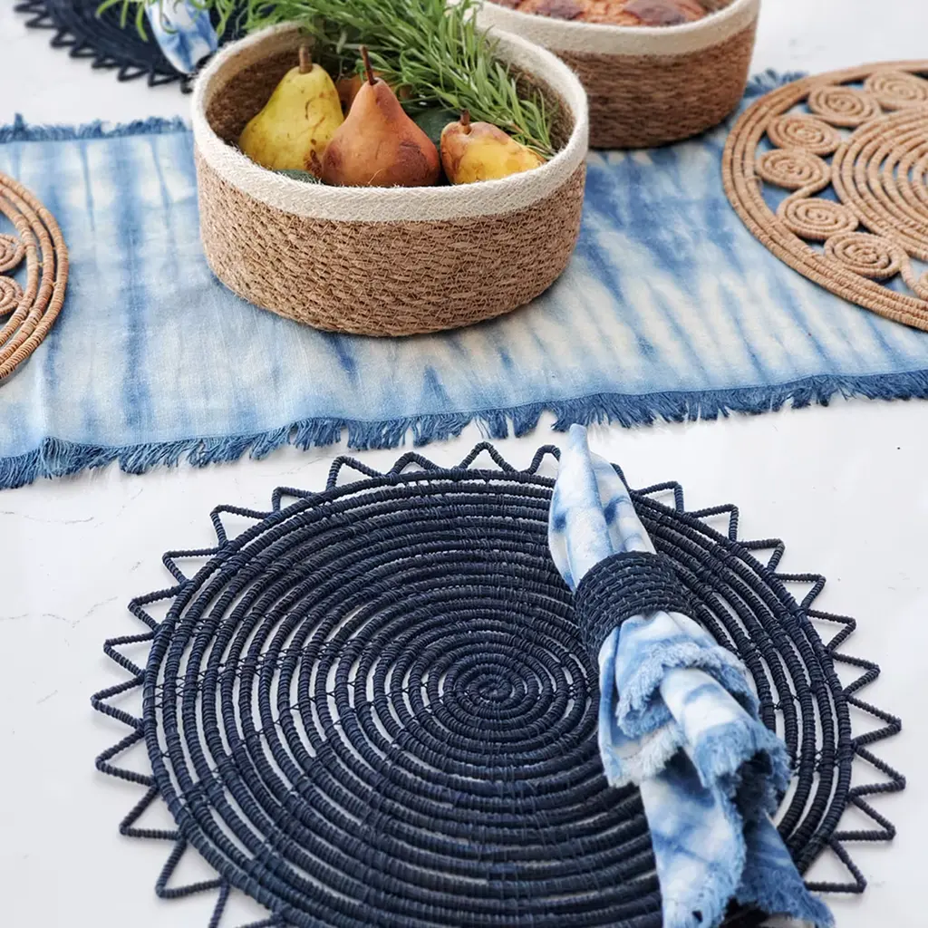 Handwoven Surya Palm Fiber Placemat In Indigo Blue - Set Of Two