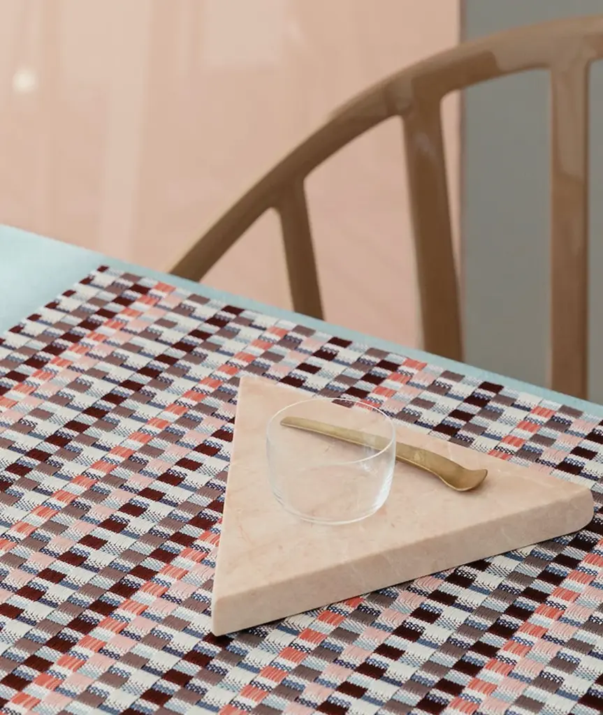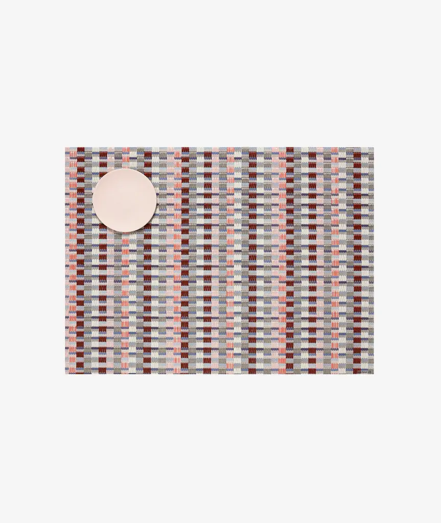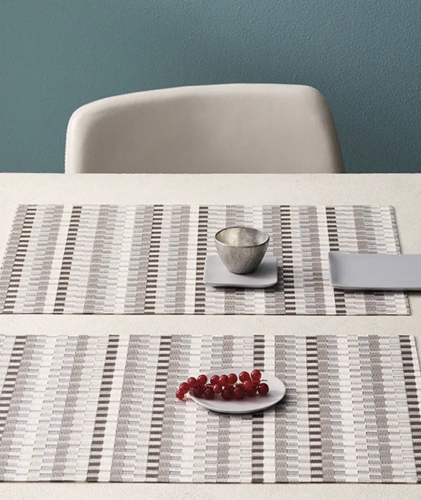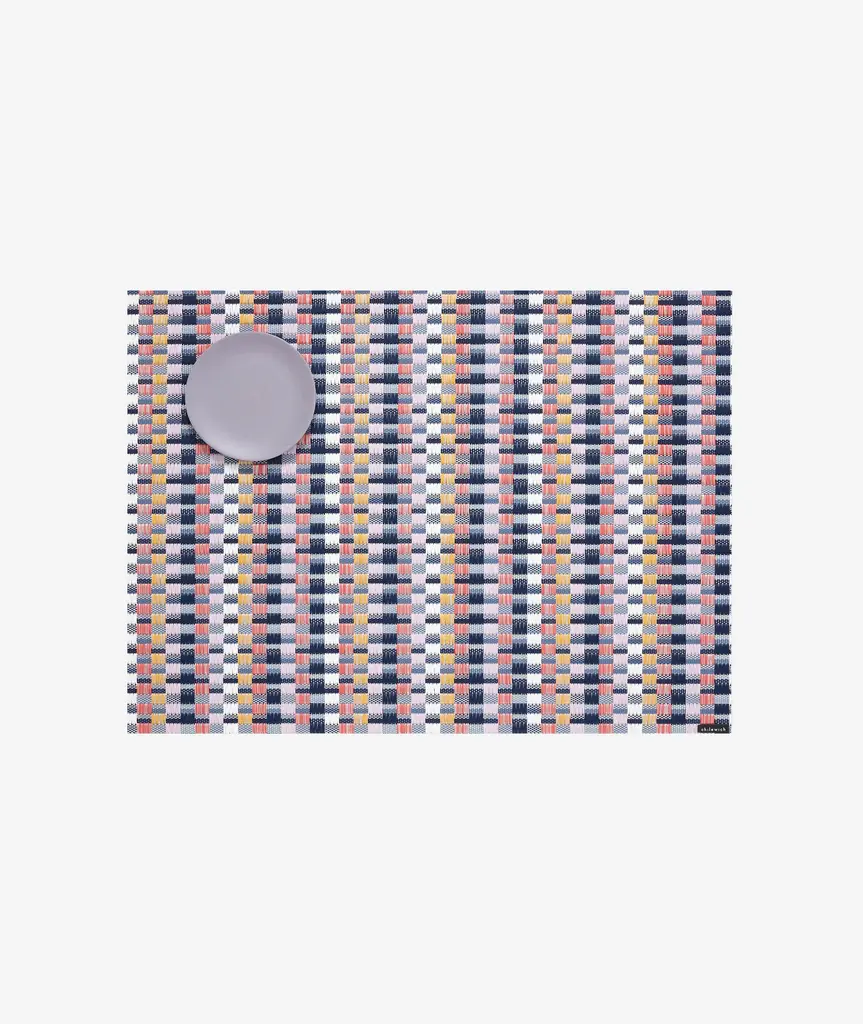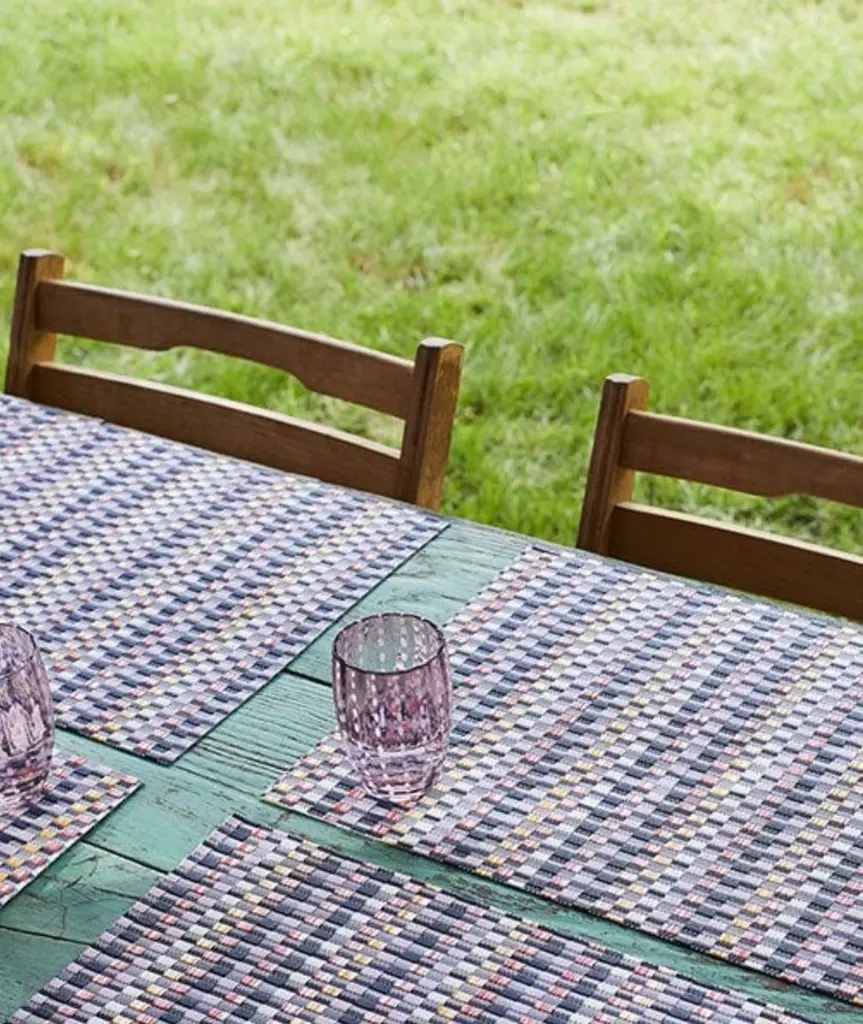 Inspired by Bauhaus textiles and debuting 100 years after the legendary design school was founded, Heddle explores the interaction of weaving and color. Areas of more graphic, floating yarns are juxtaposed with flat-woven fields of subtle stripes. Composed of approximately 50% more yarns than our signature Basketweave, this especially substantial weave is unbacked and transitions easily between indoor and outdoor spaces. For over a decade, New York based designer Sandy Chilewich has been creating original and innovative vinyl products for the home. Her woven, tufted, molded and spun textiles are available in a range of vibrant and neutral hues that have become synonymous with the Chilewich brand name.