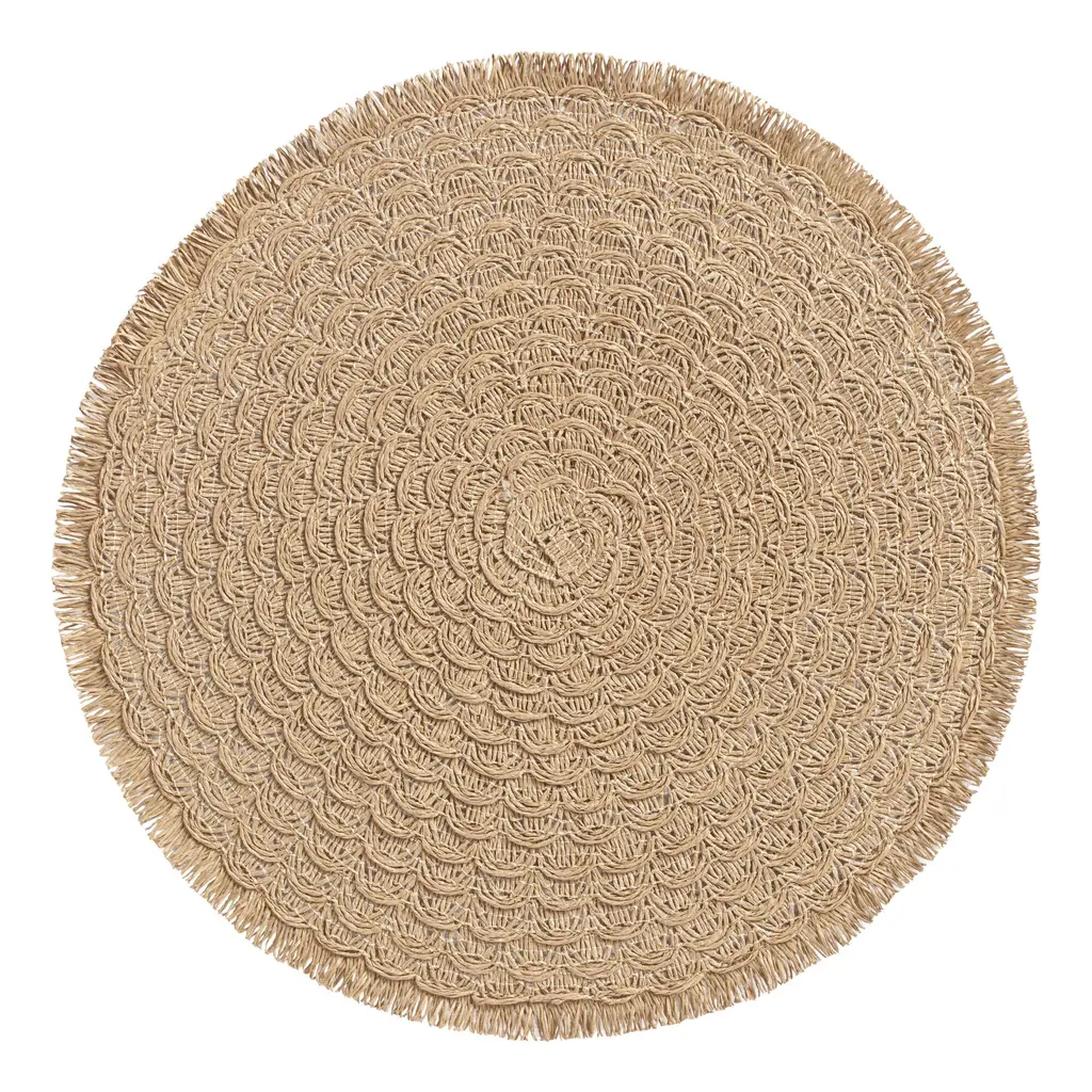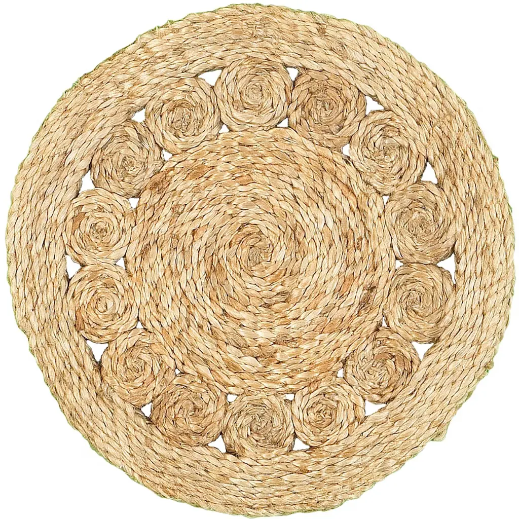 15-inch set of two natural braided jute round placemats is an exquisite addition to your dining table. These round placemats come in a set of two, perfect for intimate meals or entertaining guests. Handmade from natural jute, they offer a rustic charm that enhances any traditional dining decor. The earthy tones beautifully complement a wide range of tableware styles, adding warmth and texture to your dining experience. Their durable construction ensures longevity while maintaining an elegant appearance. Elevate your dining setup with these stylish and practical pieces that are sure to impress your family and friends. Transform every meal into a delightful occasion with these versatile placemats, ideal for everyday use or special celebrations. 15-inch h x 15-inch w x 0.3-inch d.