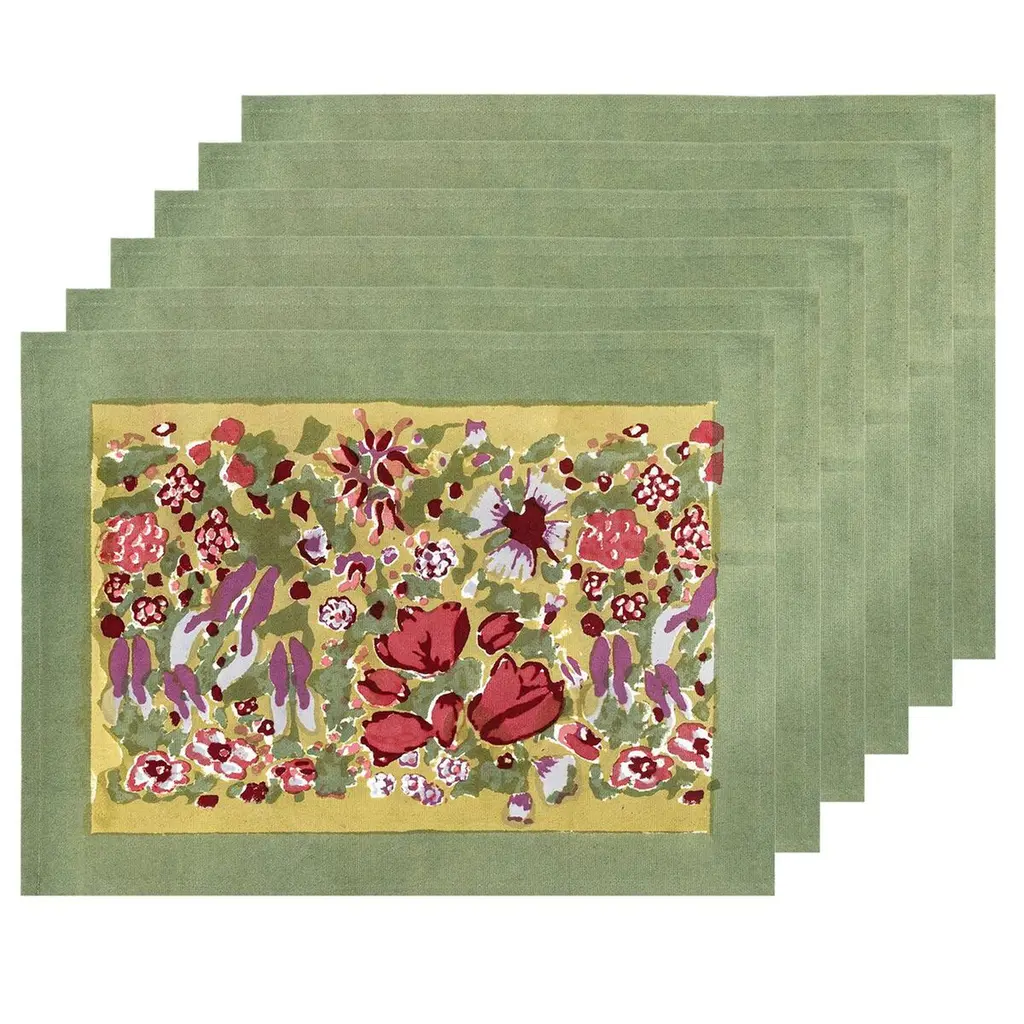 Verdant and lush, the Jardin collection is inspired by the luxuriant, loosely tended gardens of Southern France. The vibrant watercolors of this French linen will enliven any room or outdoor table with a sense of understated beauty and style, whether in spring, summer, or beyond. This fine linen has been carefully handprinted by skilled artisans using a time-honored technique, resulting in a singular piece of craftsmanship.