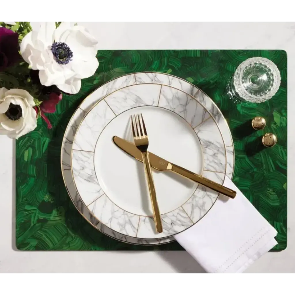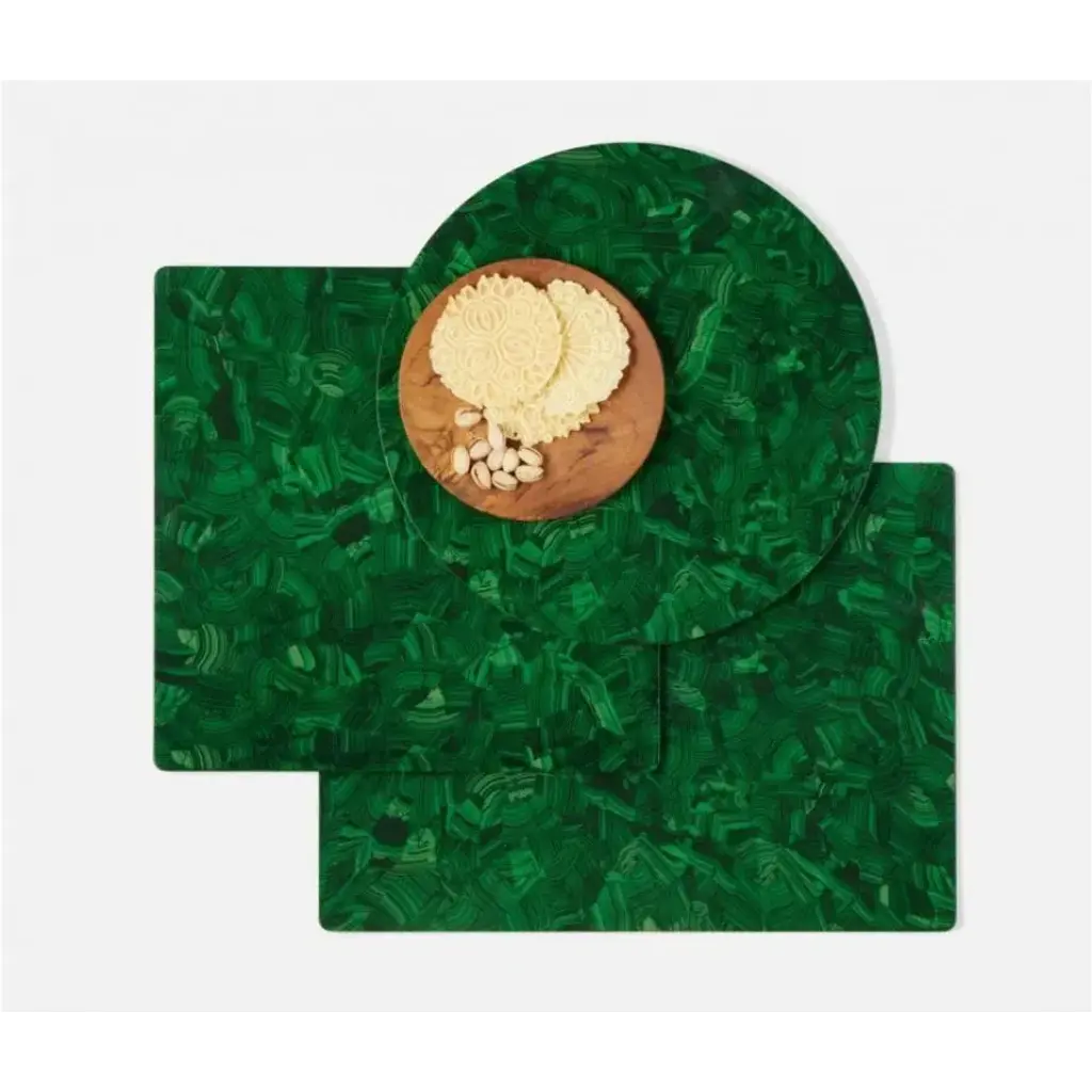 Finish: High Gloss Material: Faux Malachite Cut from striking faux emerald malachite, our Jonathan placemats deliver high Hollywood Regency style on cue. Blue Pheasant's products are handmade with care by artisans using natural materials. They are not mass produced, so variation between products should be expected, and this is why we love them! It is these irregularities that makes Blue Pheasant what it is—a special brand whose collections are distinctly handmade, full of charm and originality you’ll never find in machine-made products.