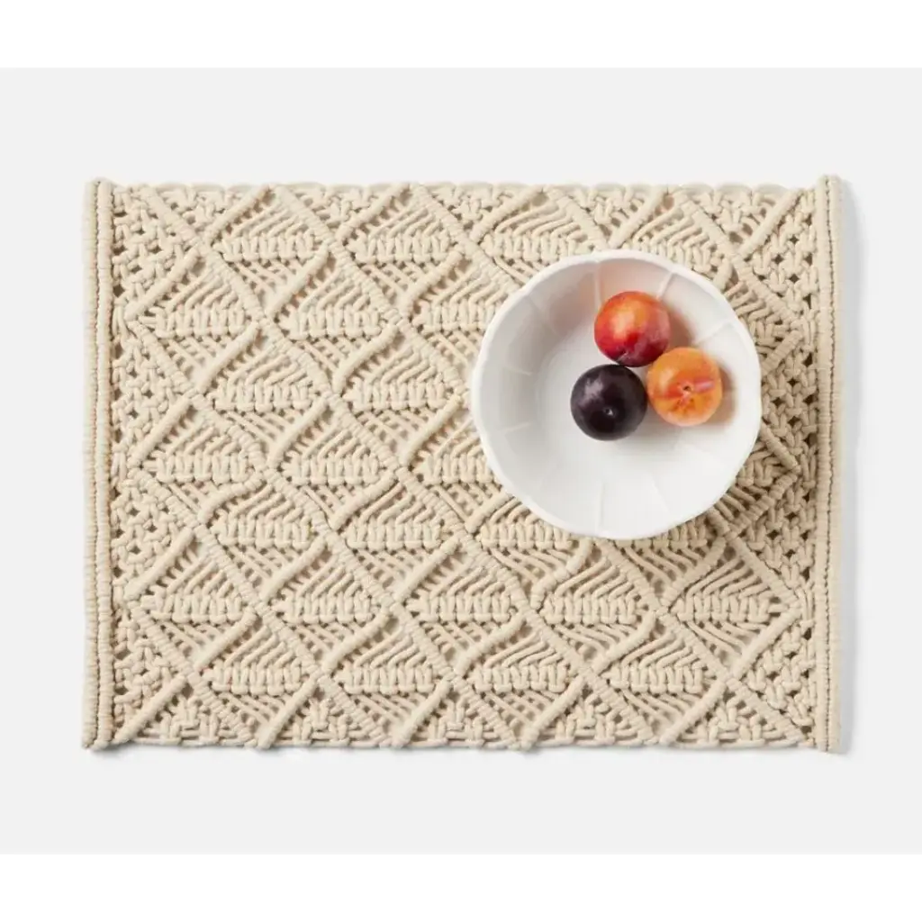 Cotton is spun into intricately detailed patterns to form our Juno placemats. Blue Pheasant's products are handmade with care by artisans using natural materials. They are not mass produced, so variation between products should be expected, and this is why we love them! It is these irregularities that makes Blue Pheasant what it is—a special brand whose collections are distinctly handmade, full of charm and originality you’ll never find in machine-made products.