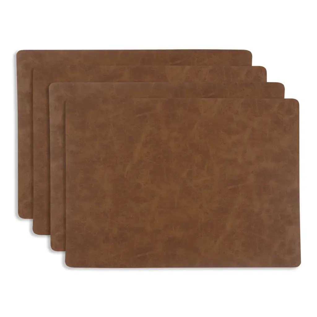 This KAF Home Santiago set of 4 faux leather placemats are the perfect addition to any casual or formal dining experience. Coming from USDA certified bio based production, these vinyl placemats have a lower carbon impact on the environment than traditional faux leather placemats. The reversible faux leather look makes these versatile and perfect for any table setting. Offered in a variety of colors. Easy care: hand wash or wipe clean.