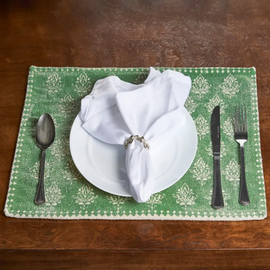 Add a touch of geometric flair to your dining table with this set of four handcrafted cotton placemats. The rectangle shape and eye-catching pattern bring a modern twist to your mealtime gatherings. Not only do these placemats offer water and stain resistance, but they're also iron-safe for easy upkeep. For best results, we recommend hand washing or spot cleaning when needed. So, go ahead and enjoy those delightful dinners without worrying about spills and stains!