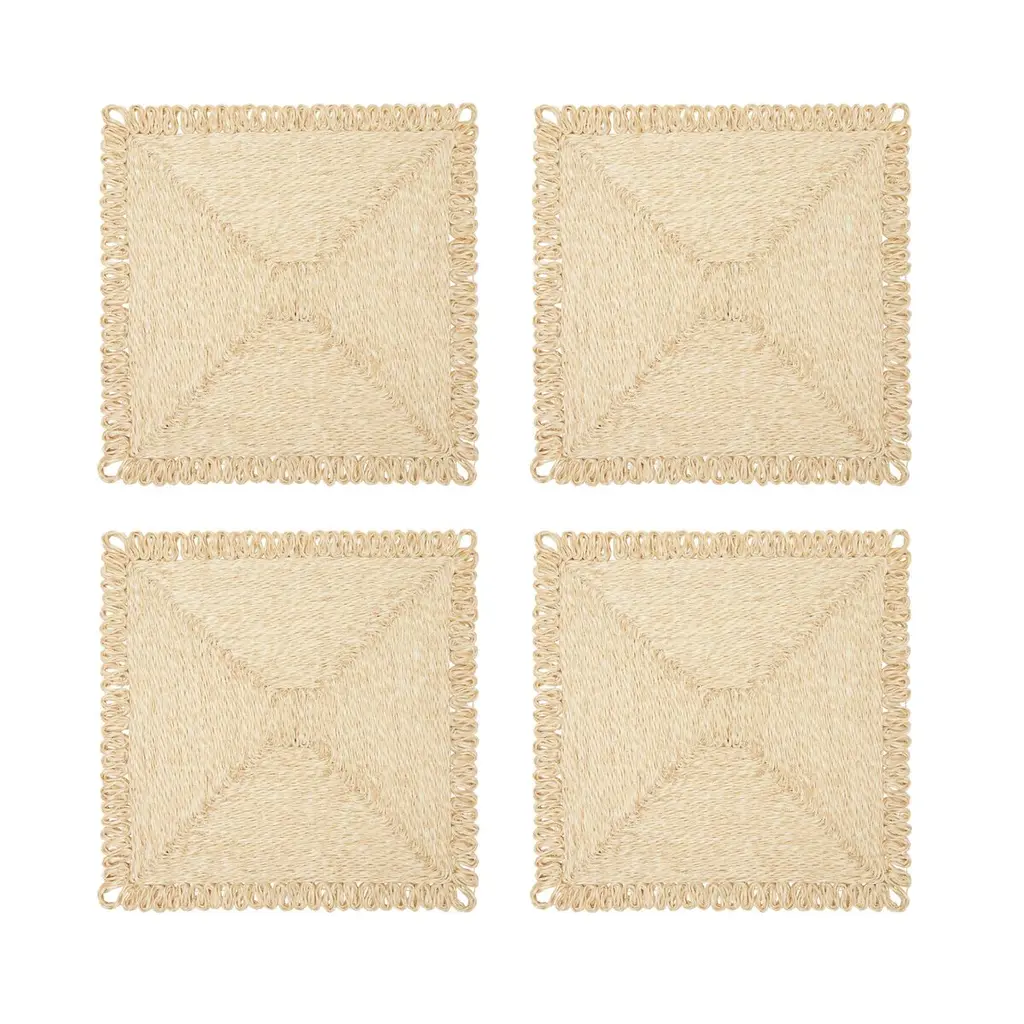 Add a touch of elegance to your tablescape with the square Loopy placemats. Featuring a natural weave design, these placemats are crafted from durable abaca, offering both style and functionality for everyday use. Sold in a set of 4, these placemats are easy to clean and perfect for casual family meals or more formal gatherings. Their versatile design complements any décor, making them an ideal addition to your kitchen or dining room. They manage to be beautiful, sophisticated, and simple all at once. Available in six beautiful colors.