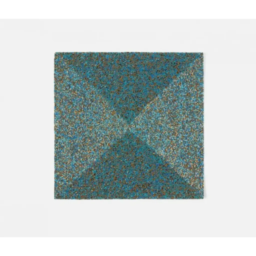 Made of coiled strands of thousands of glass beads, our Loretta placemat glitters in a turquoise and gold palette that recalls a desert sunset—for formal gatherings or special meals that require subtle sparkle. Blue Pheasant's products are handmade with care by artisans using natural materials. They are not mass produced, so variation between products should be expected, and this is why we love them! It is these irregularities that makes Blue Pheasant what it is—a special brand whose collections are distinctly handmade, full of charm and originality you’ll never find in machine-made products.