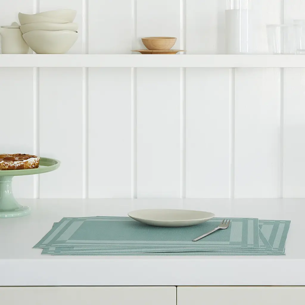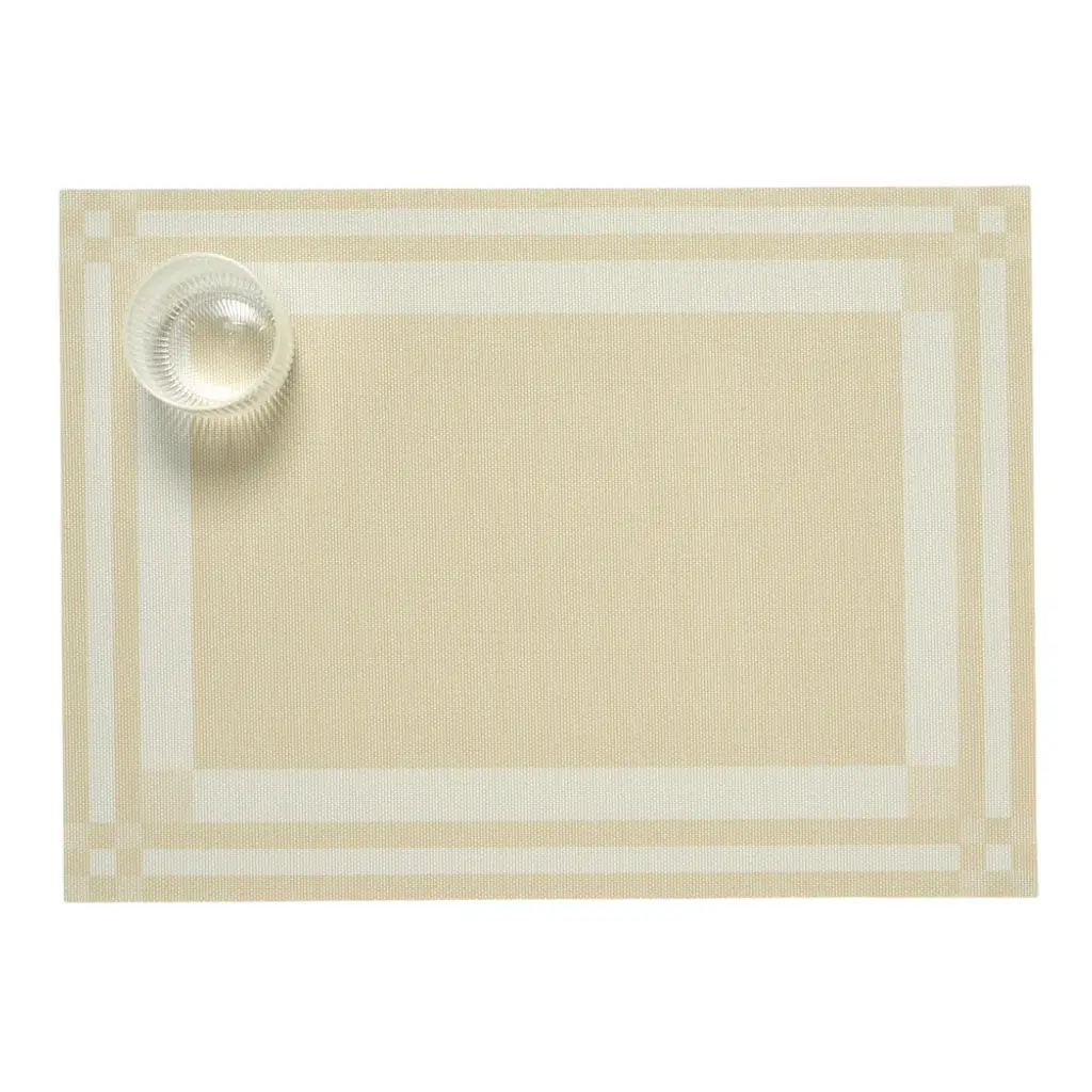 The Martha Stewart Handkerchief Rectangular Placemat Set from Chilewich exemplifies refined textile innovation through its distinguished collaborative design. Drawing inspiration from the intricate woven compositions of traditional handkerchiefs with their characteristic bordered frameworks of intersecting linear elements, these elegant table accents have been artfully reimagined with dynamic diagonal orientation. The resulting composition features ribbon-like bands of varying dimensions, weights, and textural qualities, creating a sophisticated study in subtle contrasts. Highlights