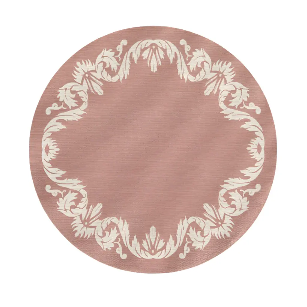 The Martha Stewart Scroll Round Placemat Set from Chilewich represents an exemplary collaboration that reinterprets historical textile ornamentation with contemporary sophistication. Drawing inspiration from the botanical embroidery that traditionally adorned vintage table linens, these distinguished circular placemats transform linear decorative elements into an elegant circumferential composition. The design atelier has artfully translated these classical scrollwork motifs through refined printing techniques on a meticulously woven foundation, creating a harmonious synthesis of traditional decorative vocabulary and modern material sensibility. Highlights