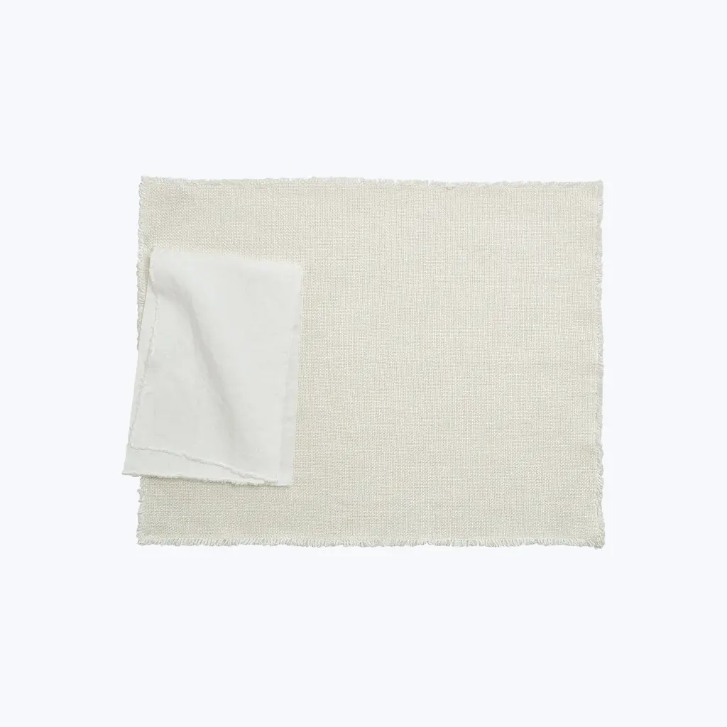 Woven of robust canvas linen, these placemats feature a fringed border detail for a table setting that feels elegant, yet effortless. The tactile, timeless appeal of linen is easily layered or mixed and matched with contrasting colors, and the simple, understated design is practical and versatile for both everyday meals and special occasions.