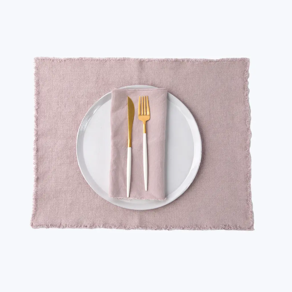 Woven of robust canvas linen, these placemats feature a fringed border detail for a table setting that feels elegant, yet effortless. The tactile, timeless appeal of linen is easily layered or mixed and matched with contrasting colors, and the simple, understated design is practical and versatile for both everyday meals and special occasions.