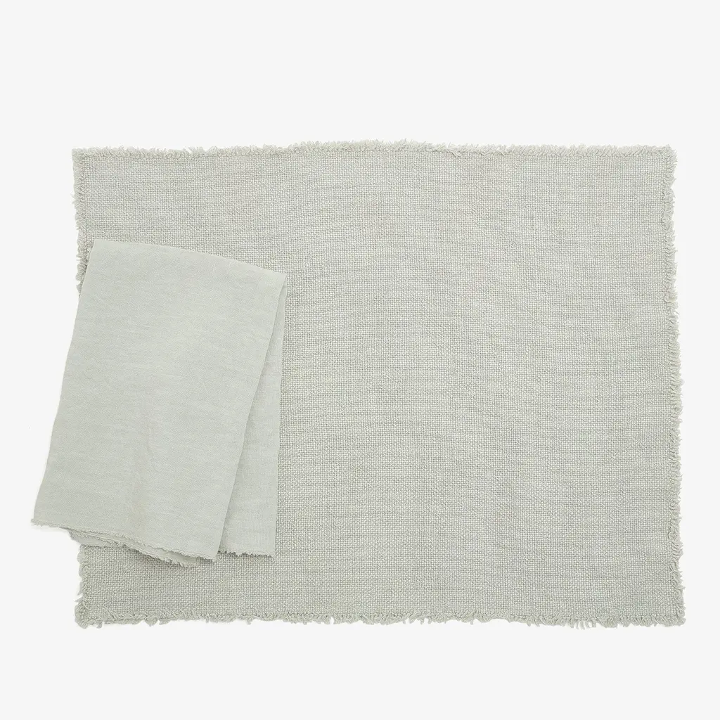 Woven of robust canvas linen, these placemats feature a fringed border detail for a table setting that feels elegant, yet effortless. The tactile, timeless appeal of linen is easily layered or mixed and matched with contrasting colors, and the simple, understated design is practical and versatile for both everyday meals and special occasions.