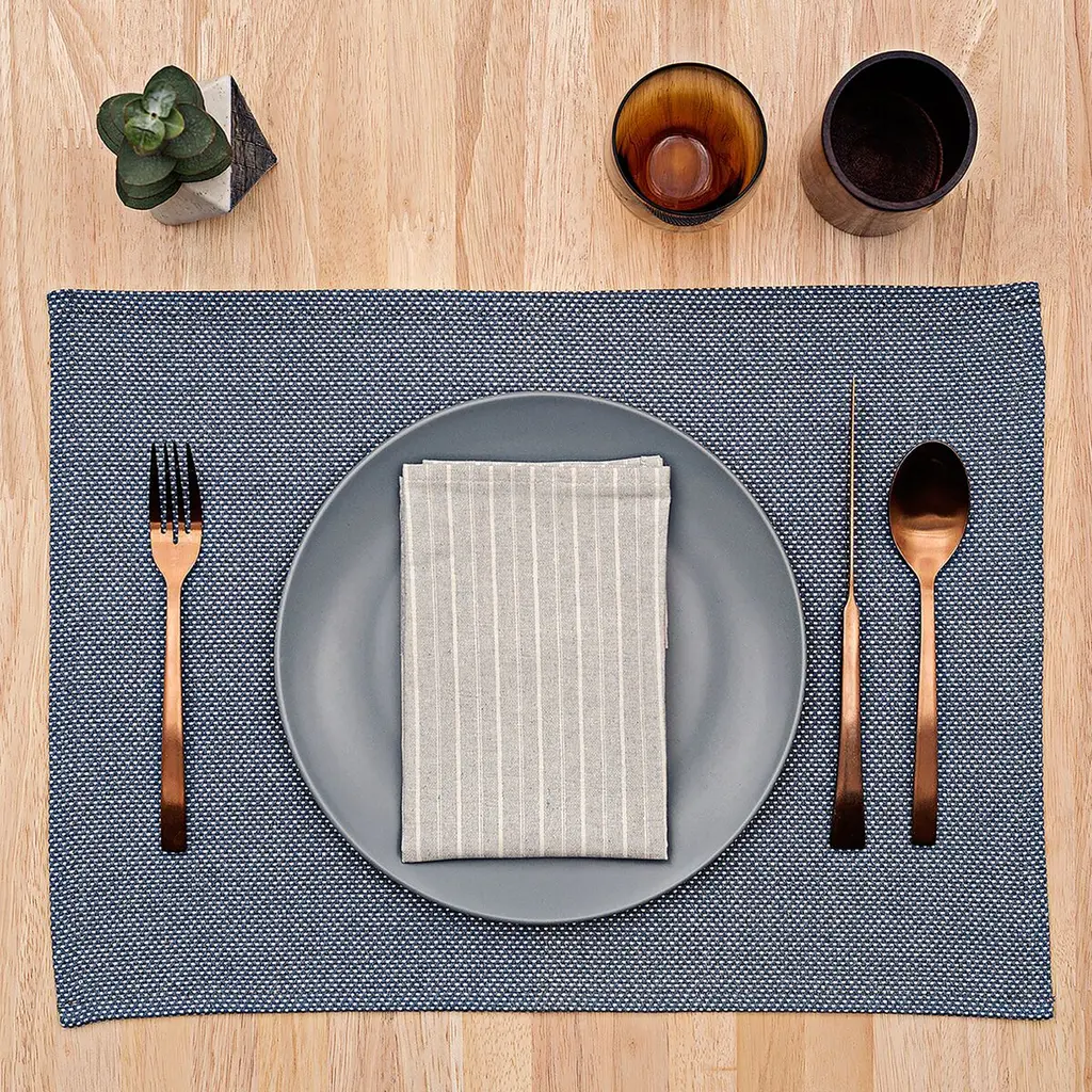 Rustic Placemats made with Upcycled Denim and Cotton. Beautifully designed for casual dining, elegant table setting, farmhouse table decor, rustic weddings and celebrations, and daily use at home. Cotton is an extraordinary material. It’s soft, breathable, absorbent, and biodegradable. However, 20,000 liters of water are required to produce a single kilogram of cotton. Jeans are cool, but 2.7 billion meters of denim fabric are produced every year, of which 15% end up as waste in denim mill floors. That's the equivalent of over 250 million pairs of jeans. Meema is a certified B Corp transforms into something else in a continuous cycle of zero waste. Nature’s process is circular. Everything transforms into something else in a continuous cycle of zero waste. Meema’s aim is to get as close to that cycle as possible with their upcycled denim textiles. Meema’s waste is turned into compost, which is used by local Guatemala coffee growers to grow some of the most delicious Arabica beans in the world.