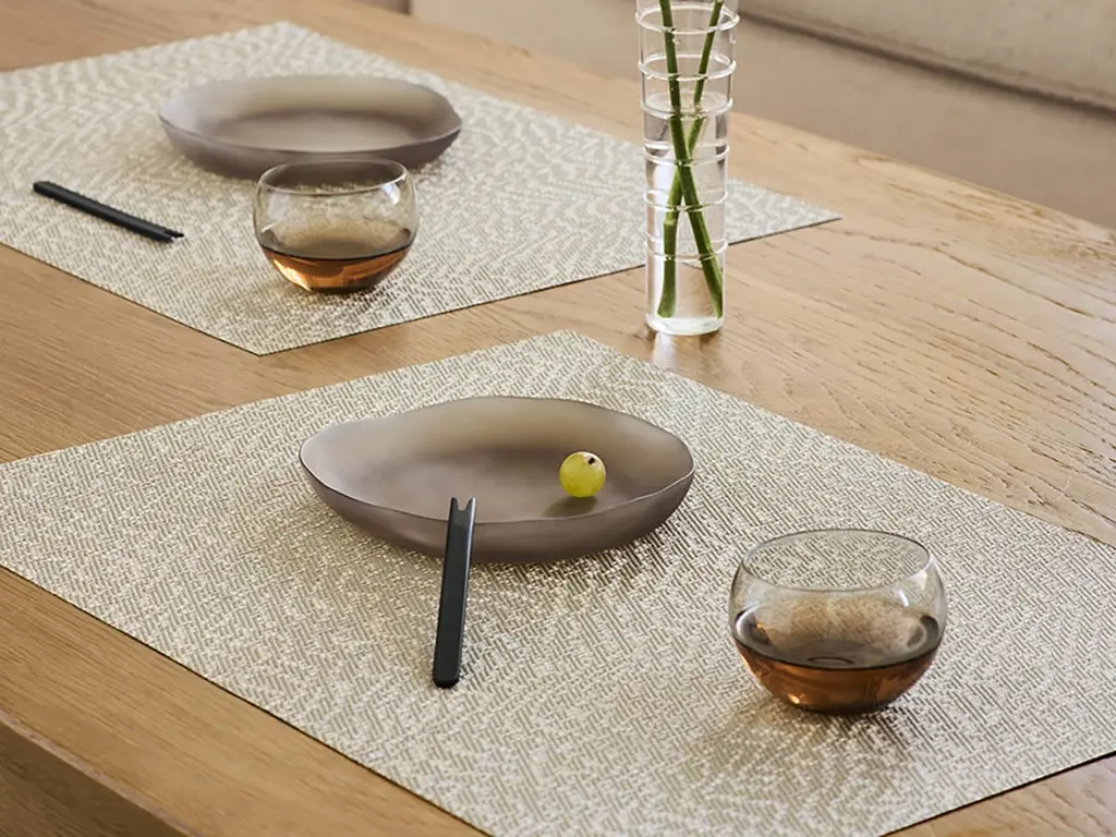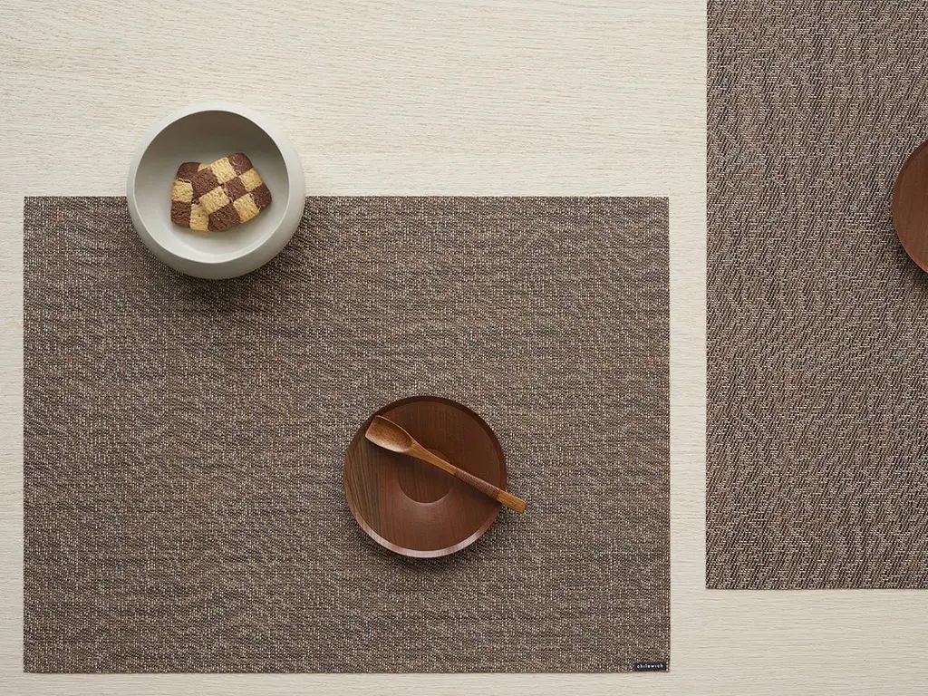 Inspired by textiles that use plied, or multi-strand, yarn to create wave-like effects, Moiré recreates this distinctively rippled quality through pattern. Versatile tonal hues come together in textural striations that evoke tiger stripes, curly lamb fur, or dappled sunlight. For over a decade, New York based designer Sandy Chilewich has been creating original and innovative vinyl products for the home. Her woven, tufted, molded and spun textiles are available in a range of vibrant and neutral hues that have become synonymous with the Chilewich brand name.