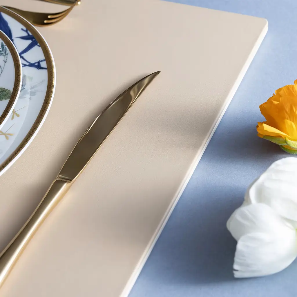 The Mondrian placemat is made of the highest quality Foglizzo leather to give your table setting a graceful sense of style and luxury. Its design is influenced by the abstract art of Piet Mondrian, featuring geometric lines and bold, vibrant colors. Stylish and simple, it coordinates with the matching coasters and napkin rings and it is available in other versions. Please, ask the Concierge service for further information.