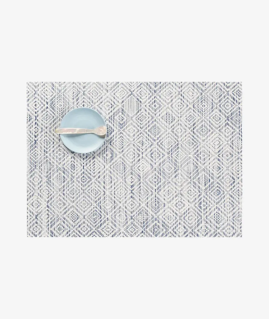 A traditional diamond twill weave is reimagined in Mosaic. Softened by a prismatic veil made possible by our signature bi-color yarns, this design is made special by a lattice of unique forms: each diamond is a different small weave pattern. For over a decade, New York based designer Sandy Chilewich has been creating original and innovative vinyl products for the home. Her woven, tufted, molded and spun textiles are available in a range of vibrant and neutral hues that have become synonymous with the Chilewich brand name.