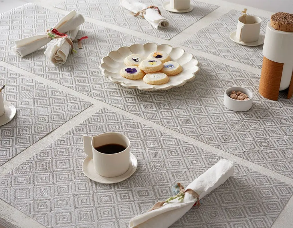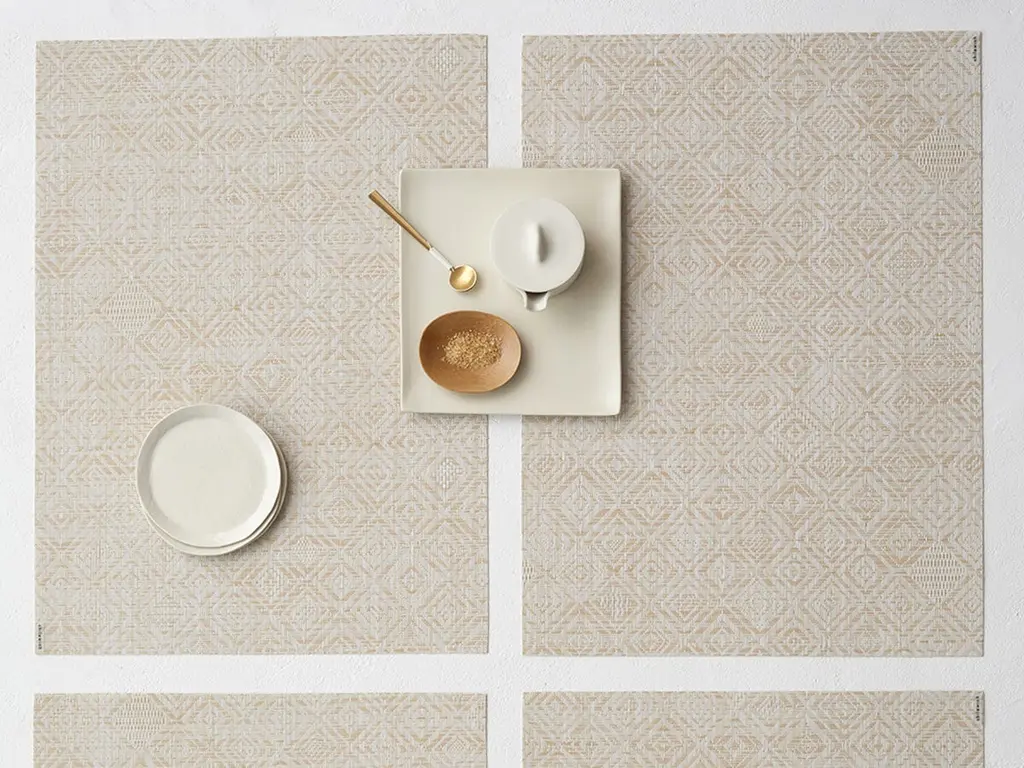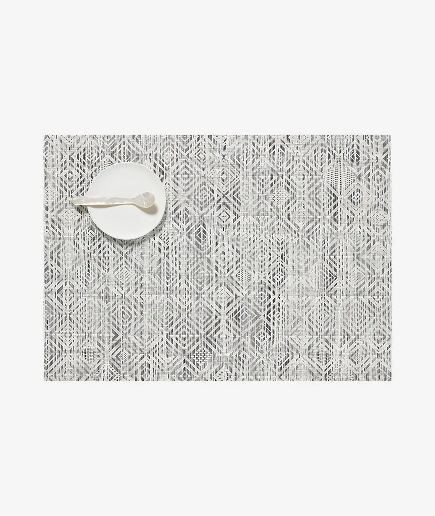 A traditional diamond twill weave is reimagined in Mosaic. Softened by a prismatic veil made possible by our signature bi-color yarns, this design is made special by a lattice of unique forms: each diamond is a different small weave pattern. For over a decade, New York based designer Sandy Chilewich has been creating original and innovative vinyl products for the home. Her woven, tufted, molded and spun textiles are available in a range of vibrant and neutral hues that have become synonymous with the Chilewich brand name.
