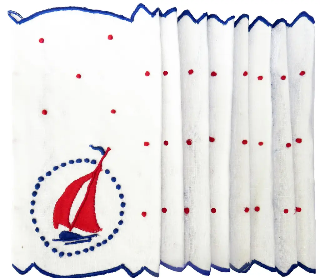 Bring the turqoise seas to your summer tables with the new placemats and napkins with boat embroidery.Set of 2