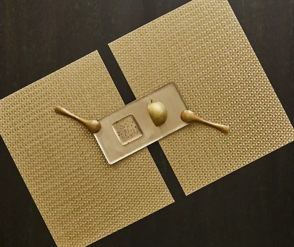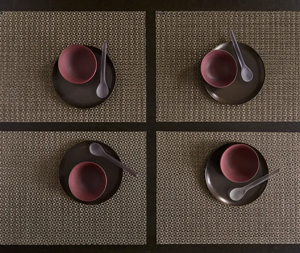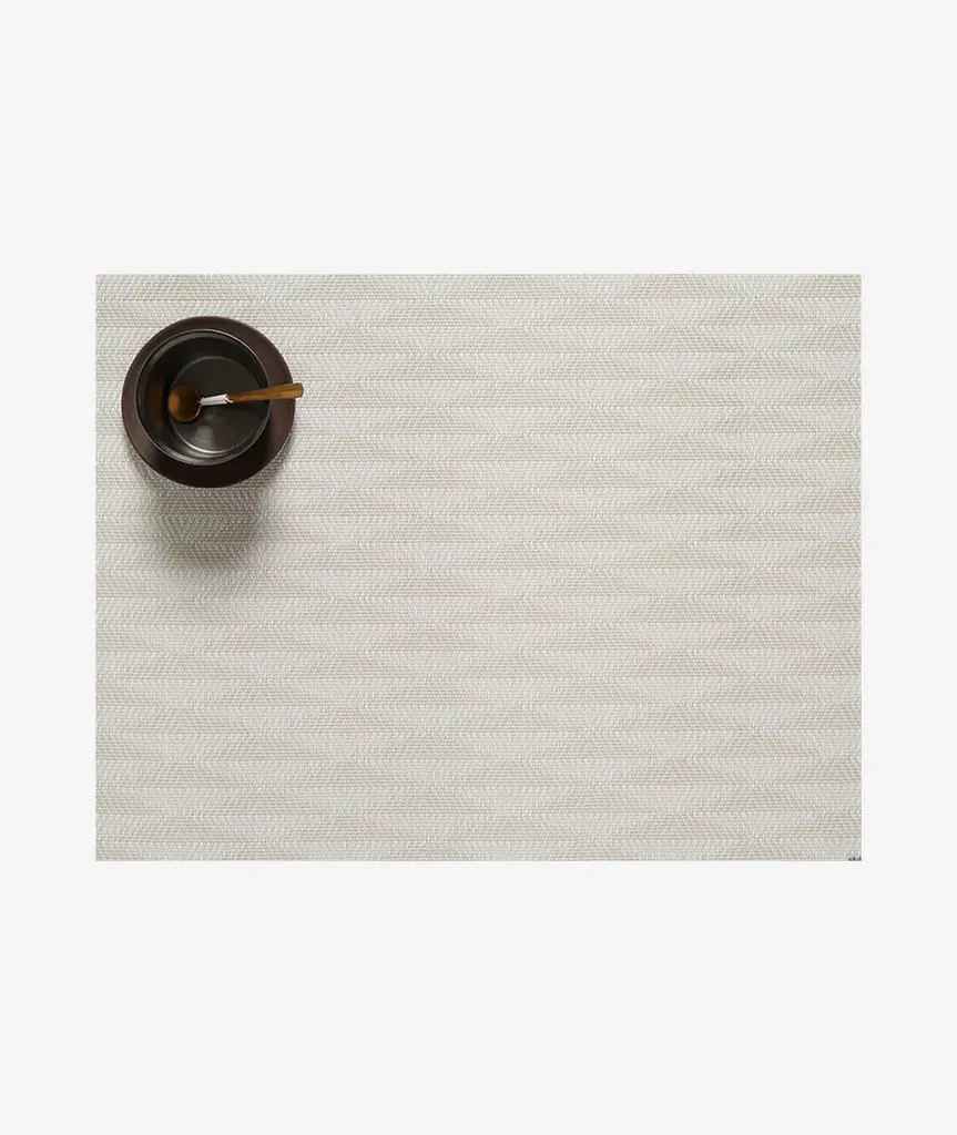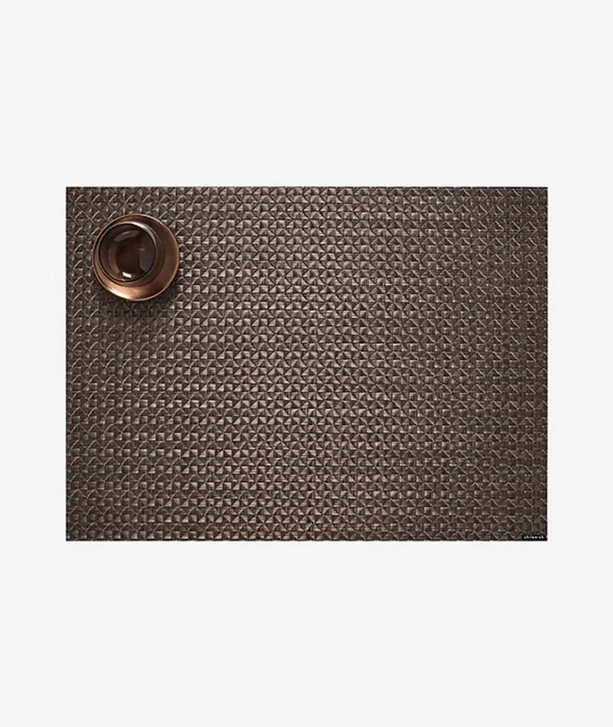 Texture and pattern unite in Origami. By expanding the dimension of this crepe weave, our design team revealed its geometric elements, creating a multifaceted surface in softly shimmering neutrals. Suitable for indoor and outdoor use. TO CLEAN: Simply wipe with soap, water and a soft sponge or cloth. Scrub stubborn stains with a soft bristle-brush and a bleach-based cleanser. For over a decade, New York based designer Sandy Chilewich has been creating original and innovative vinyl products for the home. Her woven, tufted, molded and spun textiles are available in a range of vibrant and neutral hues that have become synonymous with the Chilewich brand name.