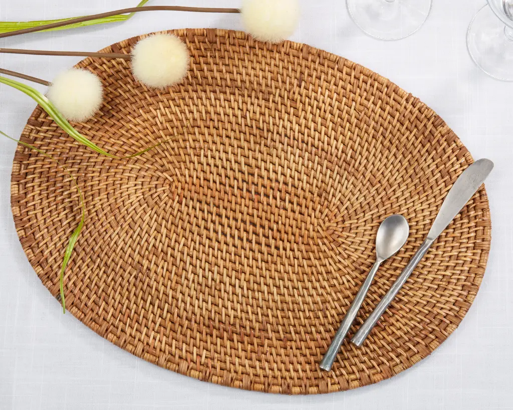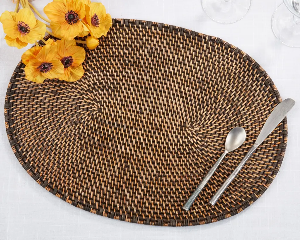Oval Woven Rattan Placemat, Set Of 4 - Brown