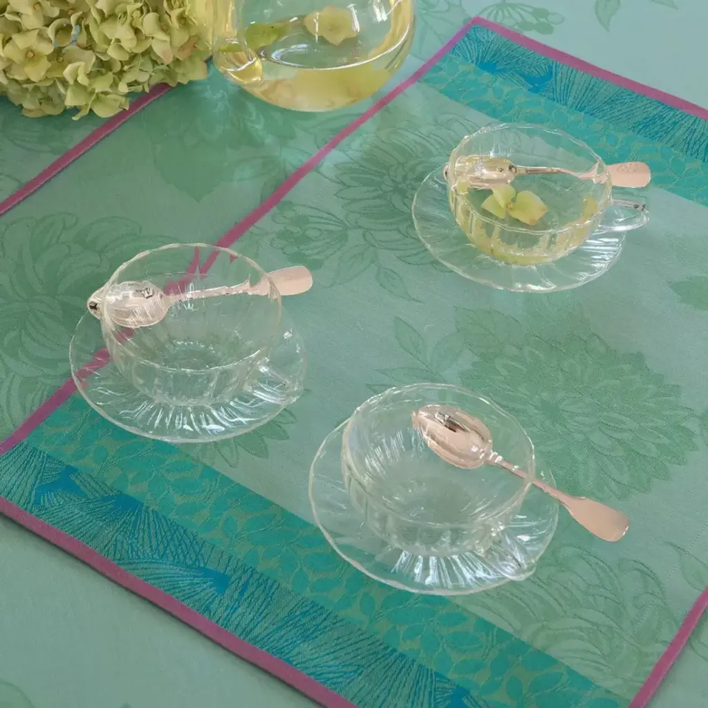 A delicate, neo-romantic fragrance pervades these armfuls of dahlias. It's always a good time to plant flowers in the house! Since 1888, Le Jacquard Francais has created a collection of table linens without equal. Weavers, warp beamers, knotters and other specialists work in harmony to perfect the weaves and colors of all of their linens. Classic Le Jacquard Francais linens are characterized by using framed woven patterns to create timeless tablecloths, napkins, placemats and table runners that will beautify your tables for many years. Le Jacquard Francais coated tablecloths are made of 100% cotton weave with long fibers. They are waterproof and stain-resistant thanks to a patented and exclusive acrylic coating that withstands washing. Newly introduced, LJF by Le Jacquard Francais is a more casual line of contemporary looks that mixes colors and patterns and plays with graphics. Practical and easy to use, these tablecloths will stand up to frequent use in the kitchen or patio.