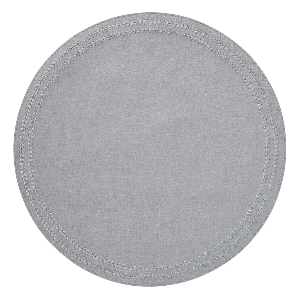 Round mats with pearl-like embroidered dots aRound the edge. Available in multiple colors.