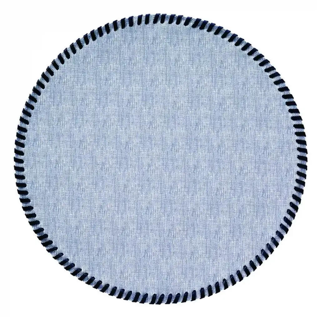 Round mats with pearl-like embroidered dots aRound the edge. Available in multiple colors.