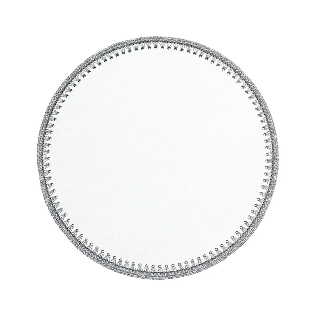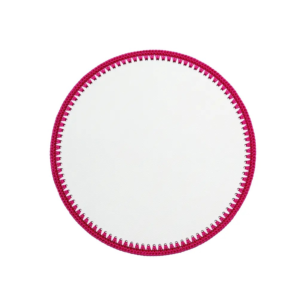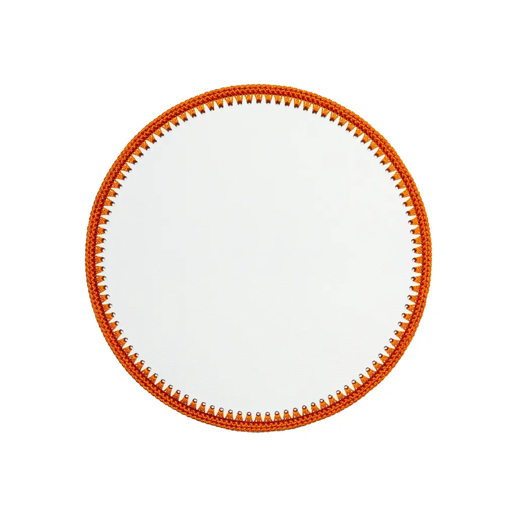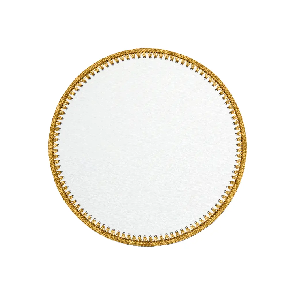 A masterful blend of smooth leather and artisanal weaving, the Pigment France Rochelle Placemat is a sophisticated foundation for dining. Expertly handcrafted in Italy, each piece features a fine leather center framed by a refined, handwoven passementerie edge. This rich combination of textures offers surprising durability, making it ideal for both elegant indoor tablescapes and stylish alfresco meals. It's a testament to the art of sophisticated, year-round entertaining. Highlights: