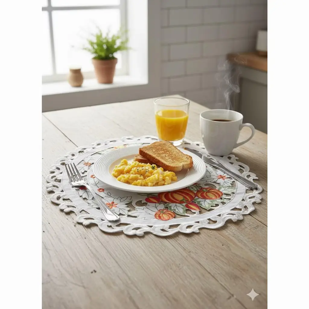 Pumpkin Embroidered Cutwork Round Placemat, 12-inch Diameter