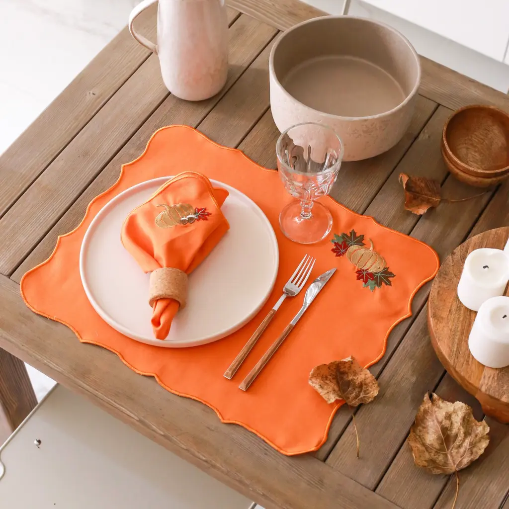 Pumpkin Embroidery Cotton Placemat Set Of 2