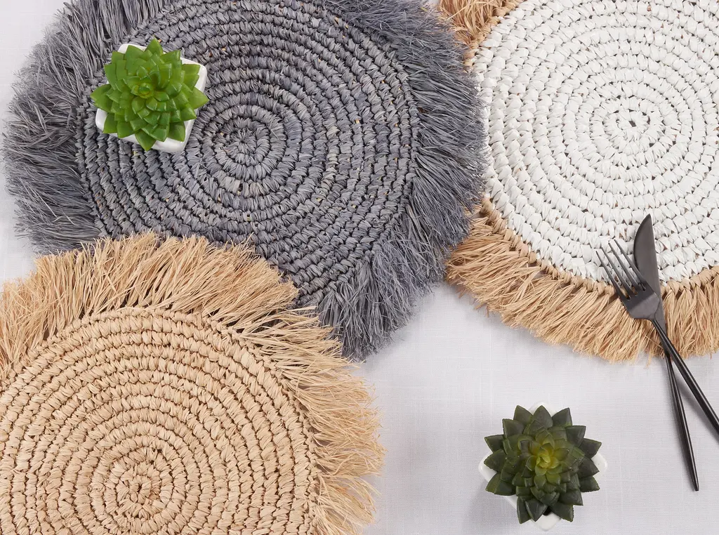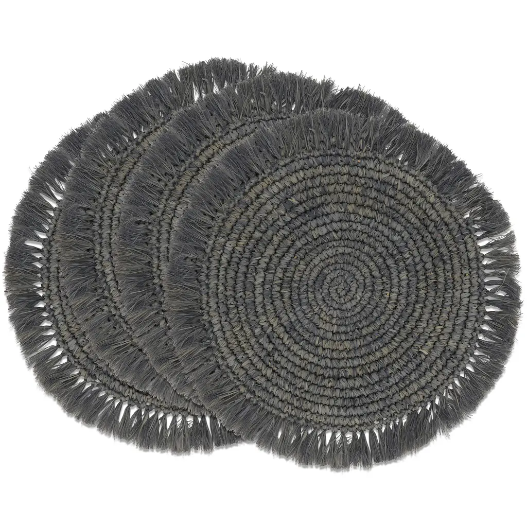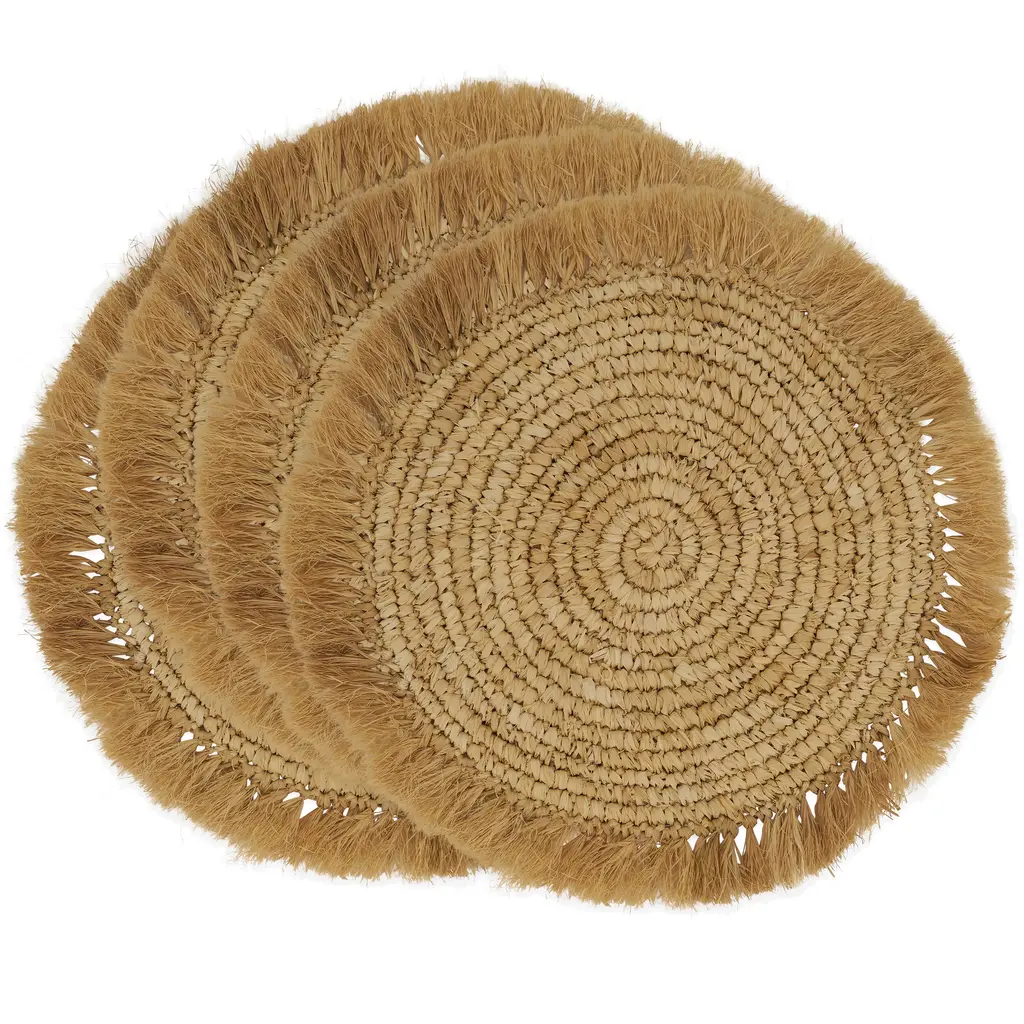 Great to use both indoor and outdoor, these Round Raffia Placemats are highly versatile and add modern style to any tabletop. Use for special occasions or stylish everyday dining, the fringed edges add soft texture to every place setting. The set includes 4 round placemats. Complete your table with dinnerware and coordinating napkins for a polished look.