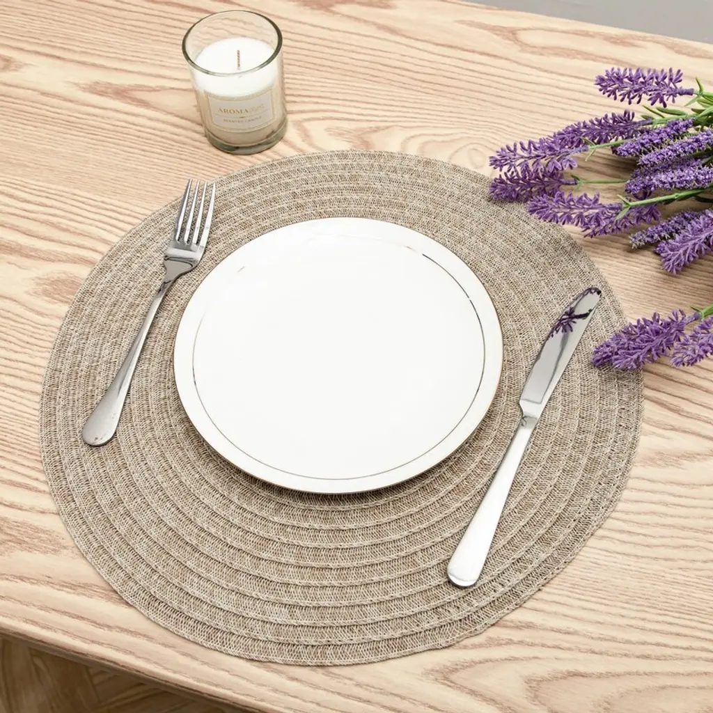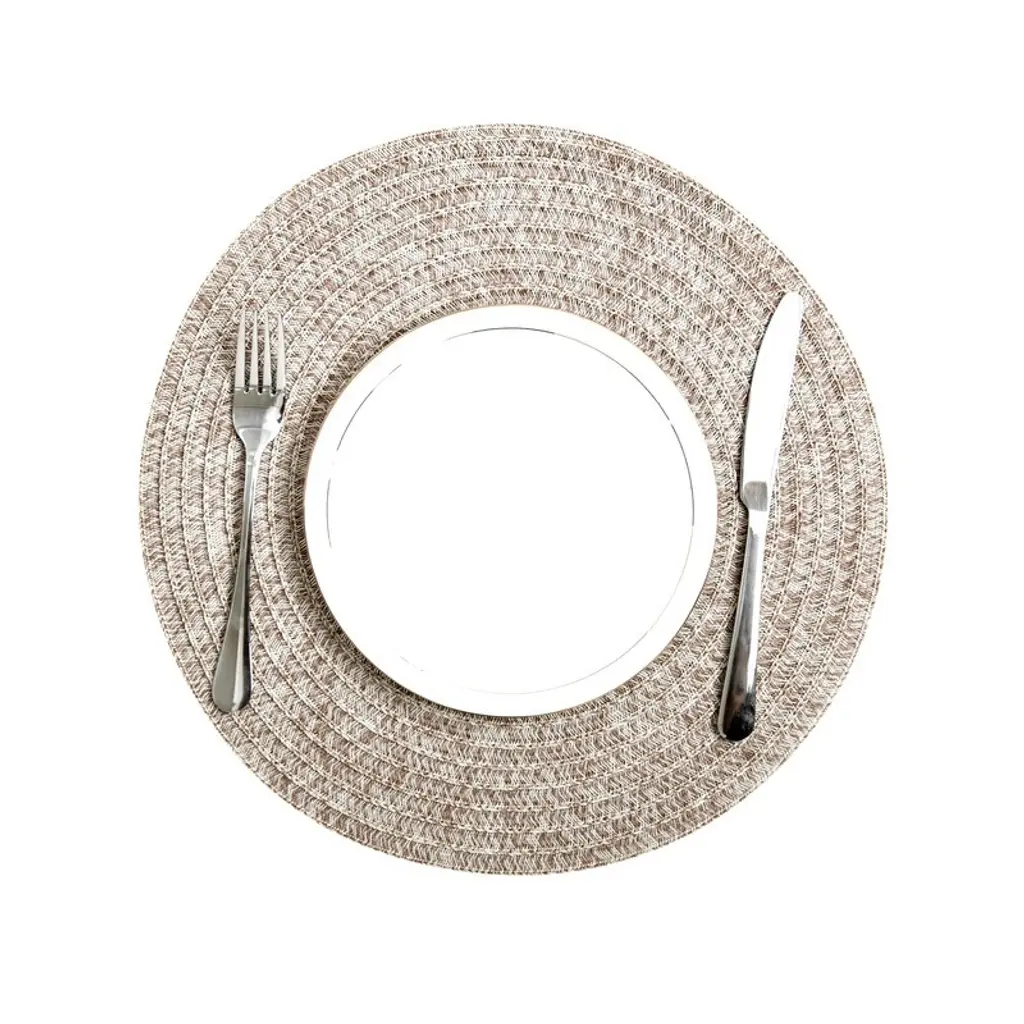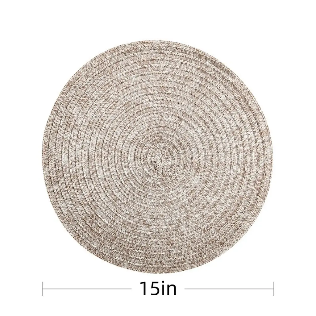 Ray Star Round Woven Vinyl Placemat Set Of 4 -15" - 15"×15" - Brown