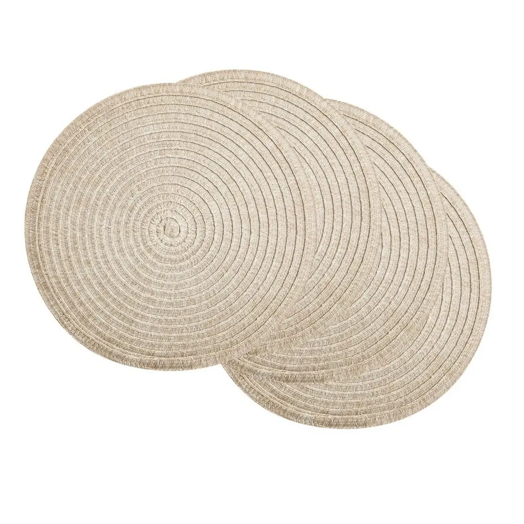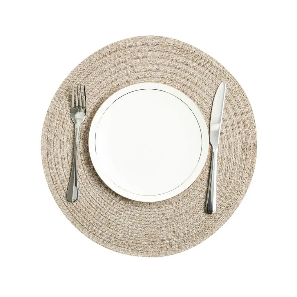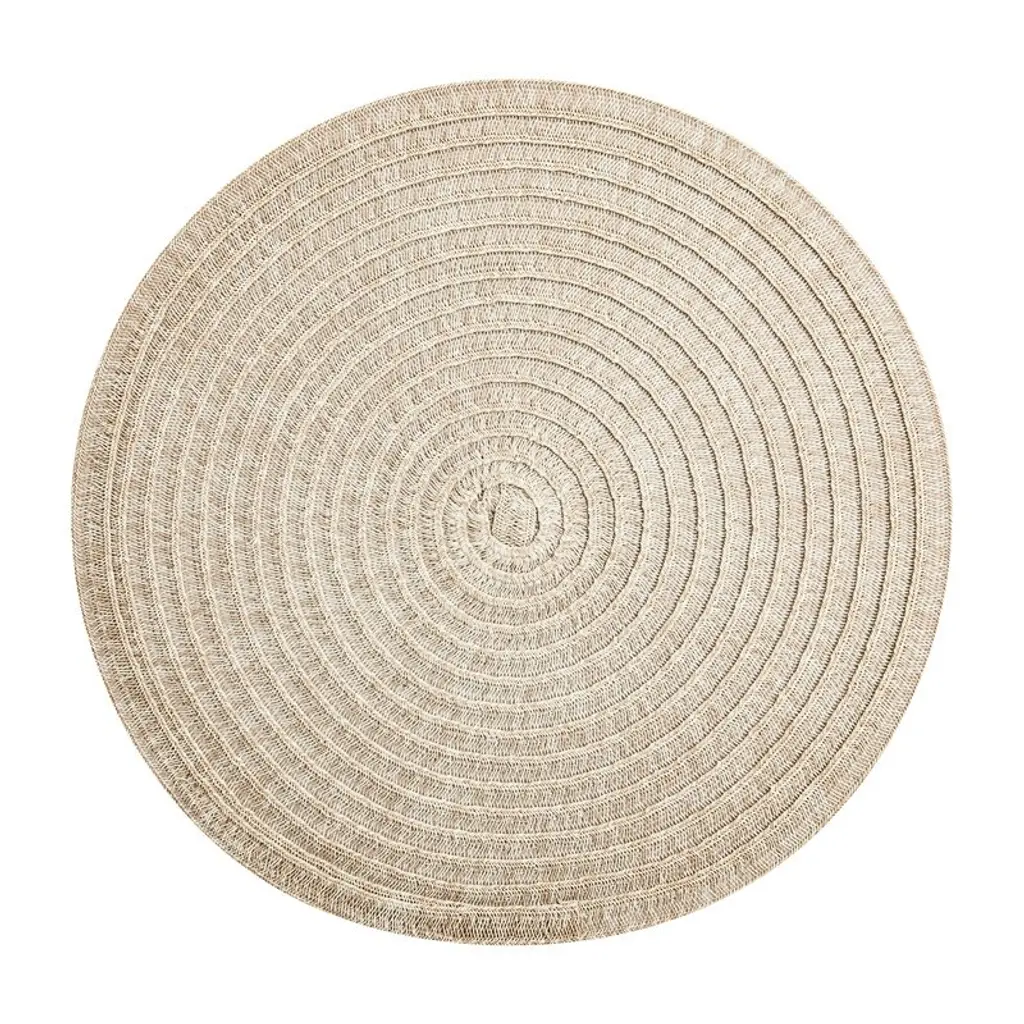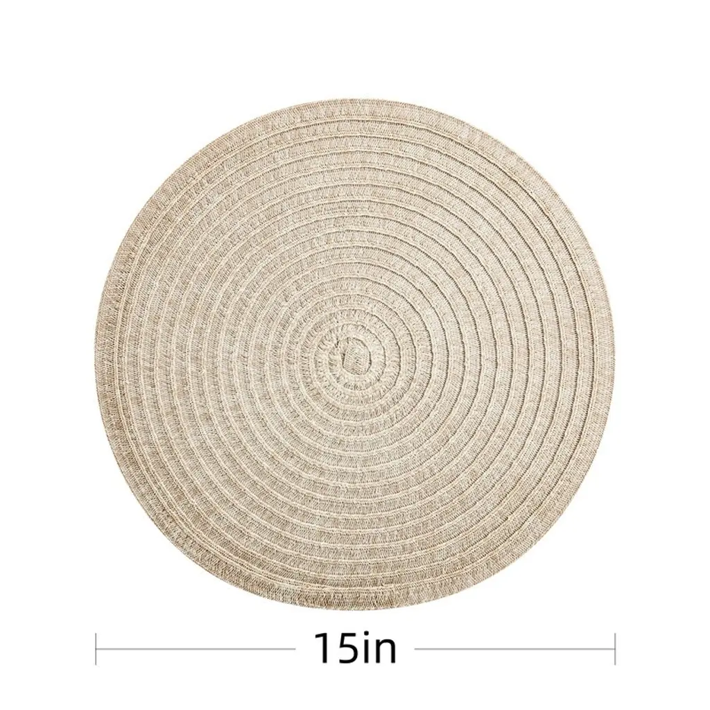 Woven from durable Textilene fabric, it showcases a modern round silhouette that is ideal for all table shapes. Stylish and functional, this round placemat can give your tablescape a splash of depth and dimension. The perfect item to decorate your table for any occasion. Features:• Set of 4• Resistant to flame, water, fade• Simple and elegant style• Weights 0.25lb• Dimensions: 15 inches x 15 inches