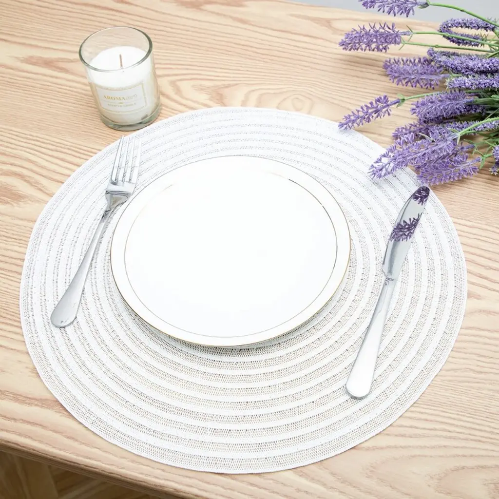 Elevate your dining experience with the RAY STAR Round Vinyl Placemat Set of 4. Designed with a stylish blend of pink and white, these placemats add a touch of warmth and charm to any table setting. Crafted from high-quality vinyl, they offer both practicality and aesthetics, making them perfect for daily use or special occasions.Woven from durable Textilene fabric, this set showcases a modern round silhouette that is ideal for all table shapes. Stylish and functional, these placemats give your tablescape a splash of depth and dimension—perfect for decorating your table for any occasion.Key Features:Additional Features: