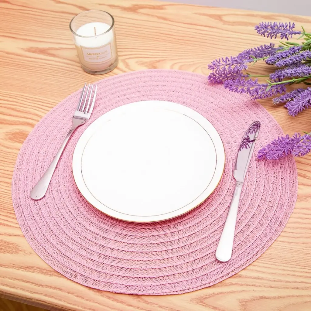 Ray Star Round Woven Vinyl Placemat Set Of 4 - Pink