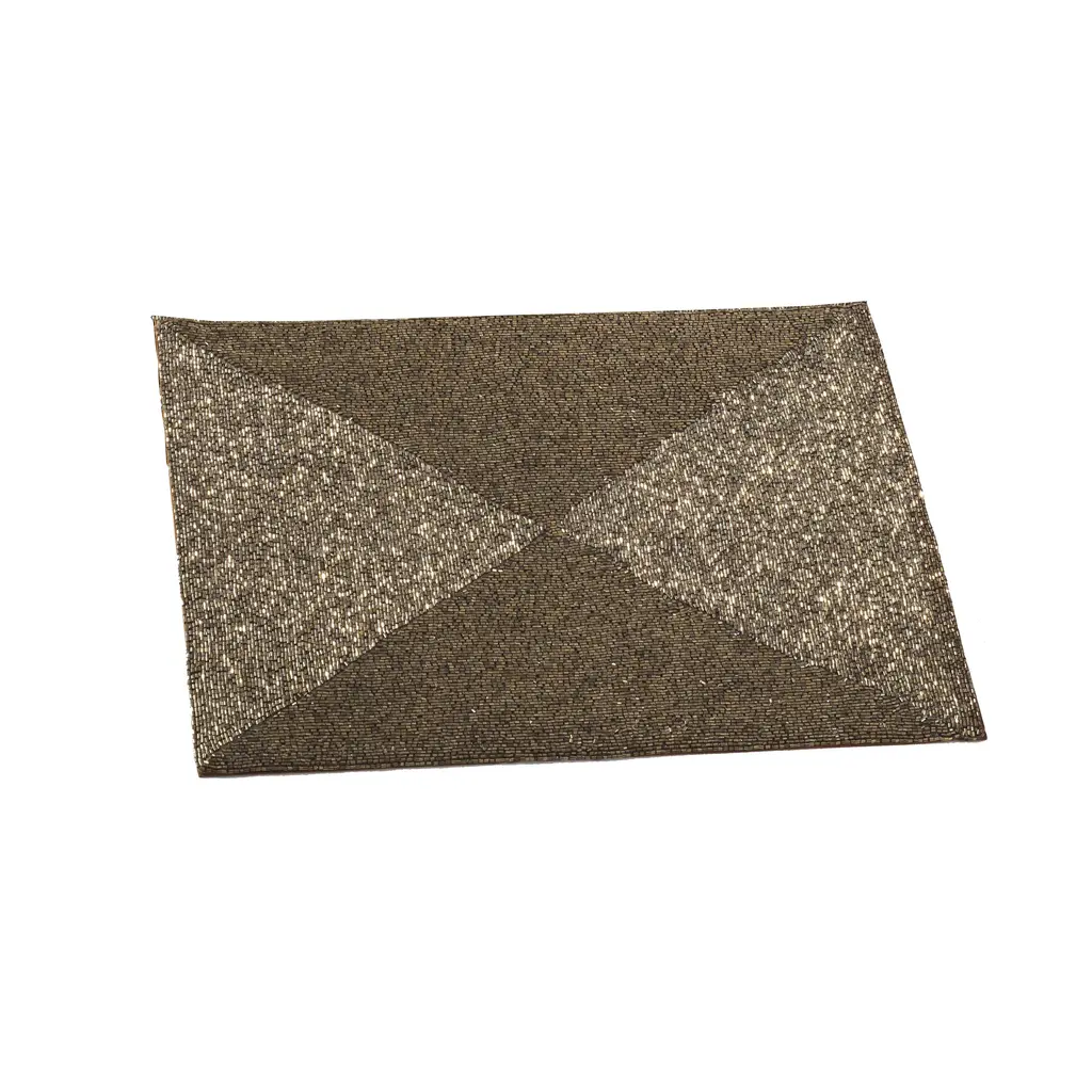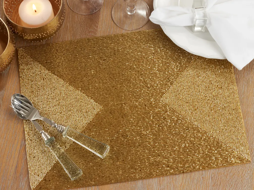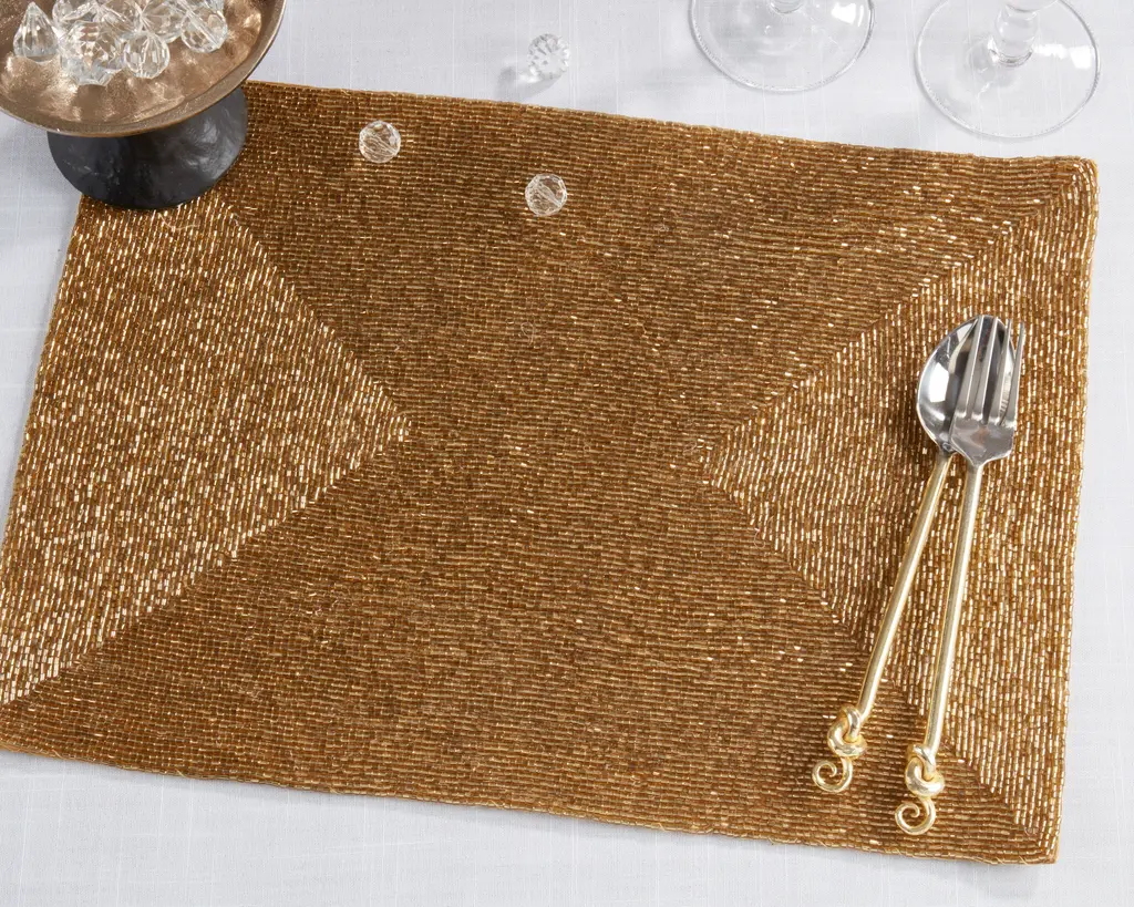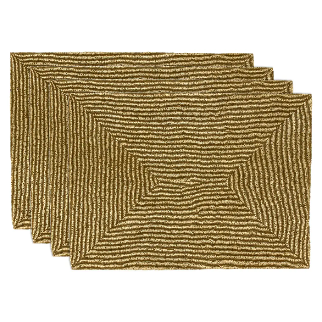 Rectangle Beaded Design Placemat, Set Of 4 - Gold