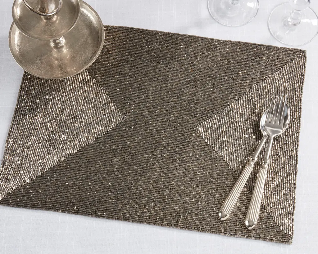 This beautiful set of Beaded Design Placemats adds a chic, stylish note to your table decor. The beads bring not only a dash of glamour to the tabletop, but they also add texture and depth to the design. These placemats are easy to pair and a great way to highlight each and every place setting.