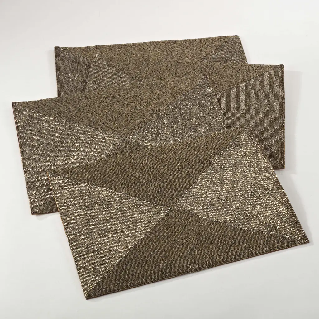 Rectangle Beaded Design Placemat, Set Of 4 - Pewter