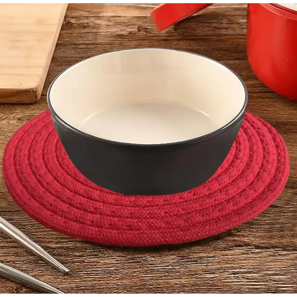 Red Extra Thick Woven Trivet Round Placemats Natural Cotton Hot Potholder Mat Heat Resistant - 9"x9" - 3 Pieces - Red