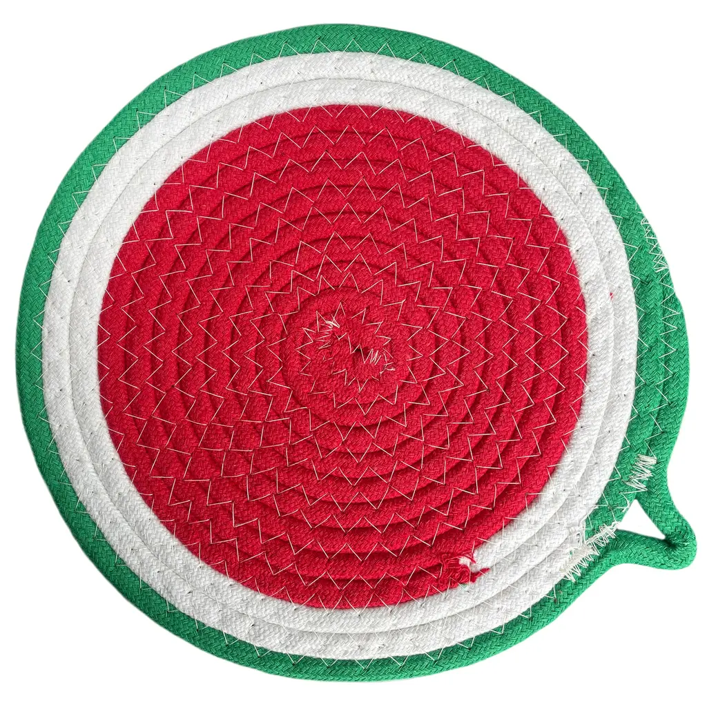Red Green Extra Thick Woven Trivet Round Placemats Hot Potholder Mat Heat Resistant - 9.8"x9.8" - 8 Pieces - Green / Red