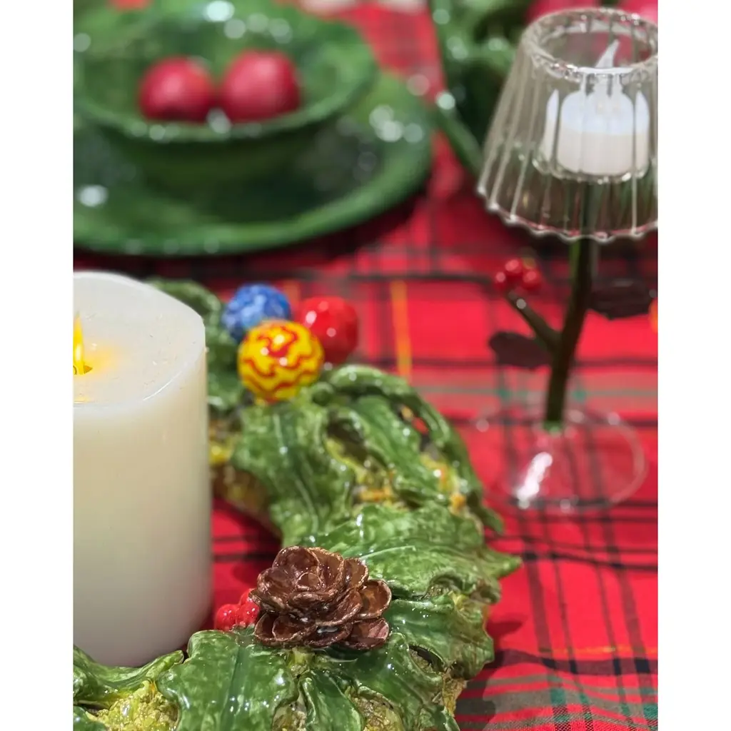 From holiday entertaining to a cozy winter meal, these charming red and green tartan napkins will add an inviting aesthetic to your table. A black embroidered border provides definition to the scalloped edges.