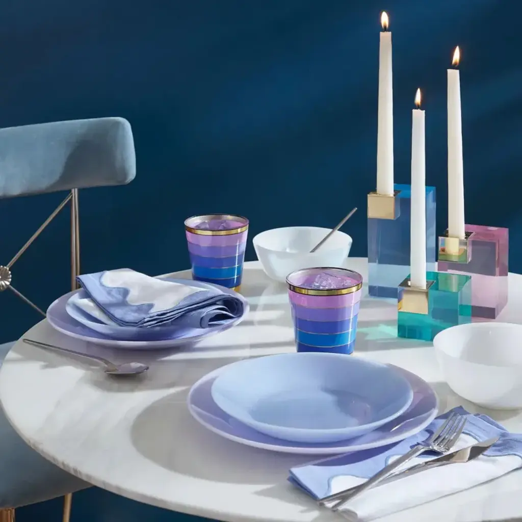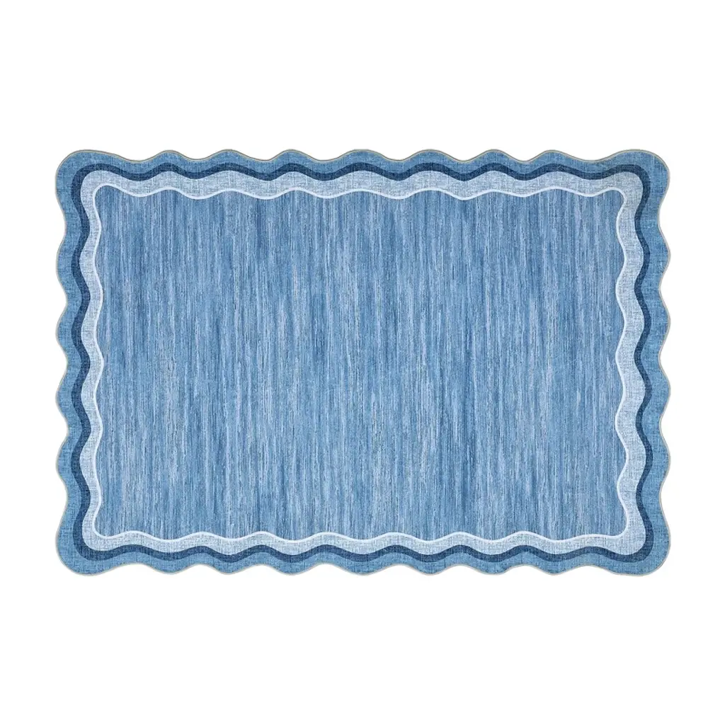 Chic and simple, our Ripple placemats feature a wavy border that gives its two-toned design a modern edge. Match with our Ripple napkins and Ether dinnerware for a calm, cool, and coordinated look. Boxed for easy gifting, our table linens are the perfect present for your favorite host, to celebrate a housewarming, or to give your own tabletop a fresh touch. Set of four.