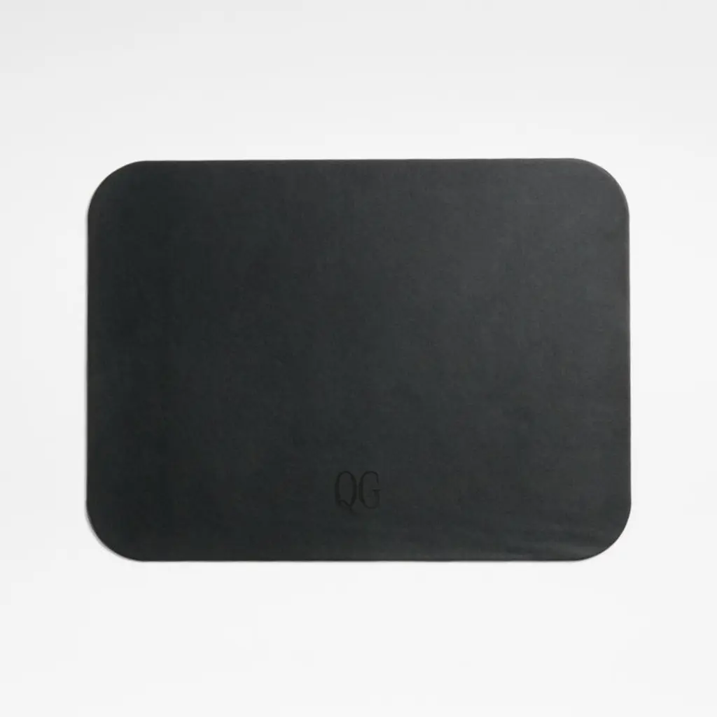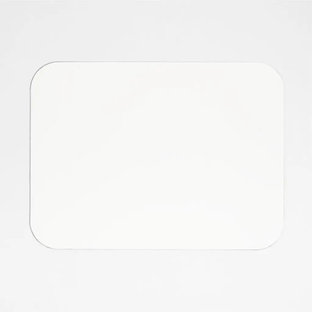 Our Rizzo rectangular placemat replicates the luxe look of leather. Tinted white and flipping to black, the double-sided placemat sets a sophisticated and table-saving foundation for any place setting. Made of responsibly sourced materials, the Rizzo faux leather placemat is a Crate & Barrel exclusive.